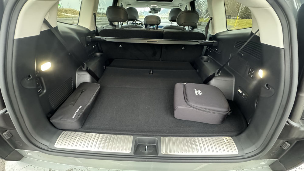 Farangursrýmið er sveigjanlegt og nýtist vel. Með öllum sætum uppi er plássið ágætt, en felli maður niður aðra og þriðju röð opnast risastórt rými sem minnir helst á meðalstóran sendibíl. Þessi sveigjanleiki gerir Ioniq 9 einstaklega heppilegan fyrir stærri fjölskyldur, íþróttafólk, vinnustaðaferðir eða einfaldlega þá sem þurfa stundum að flytja meira en fólk í bíl. Sjá myndband með ítarlegri úttekt á skottplássi og sætum.