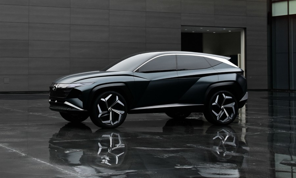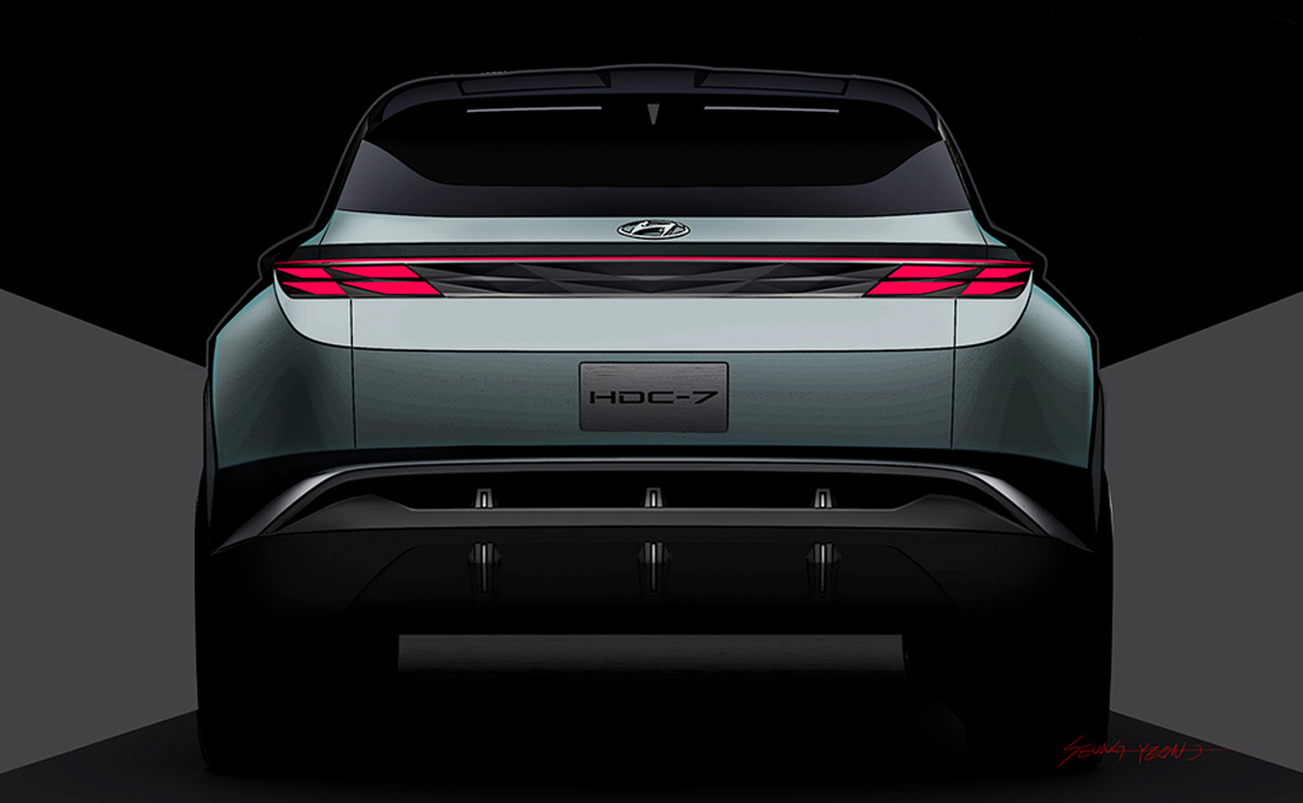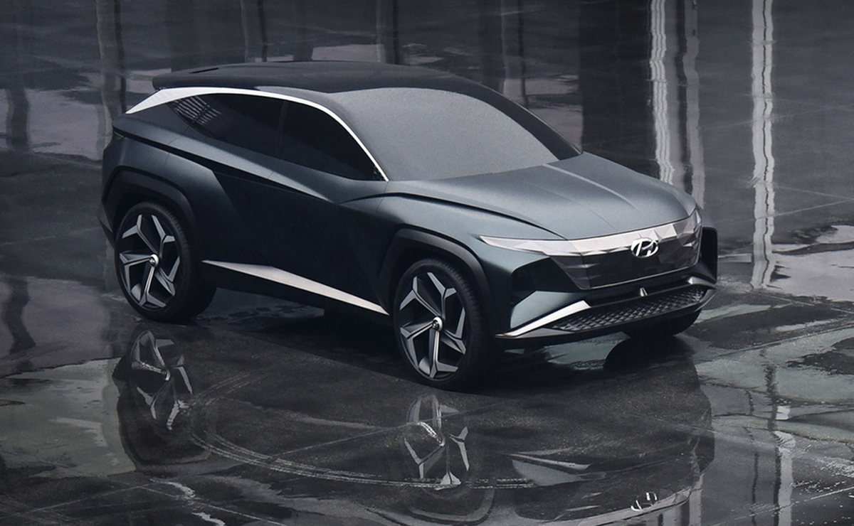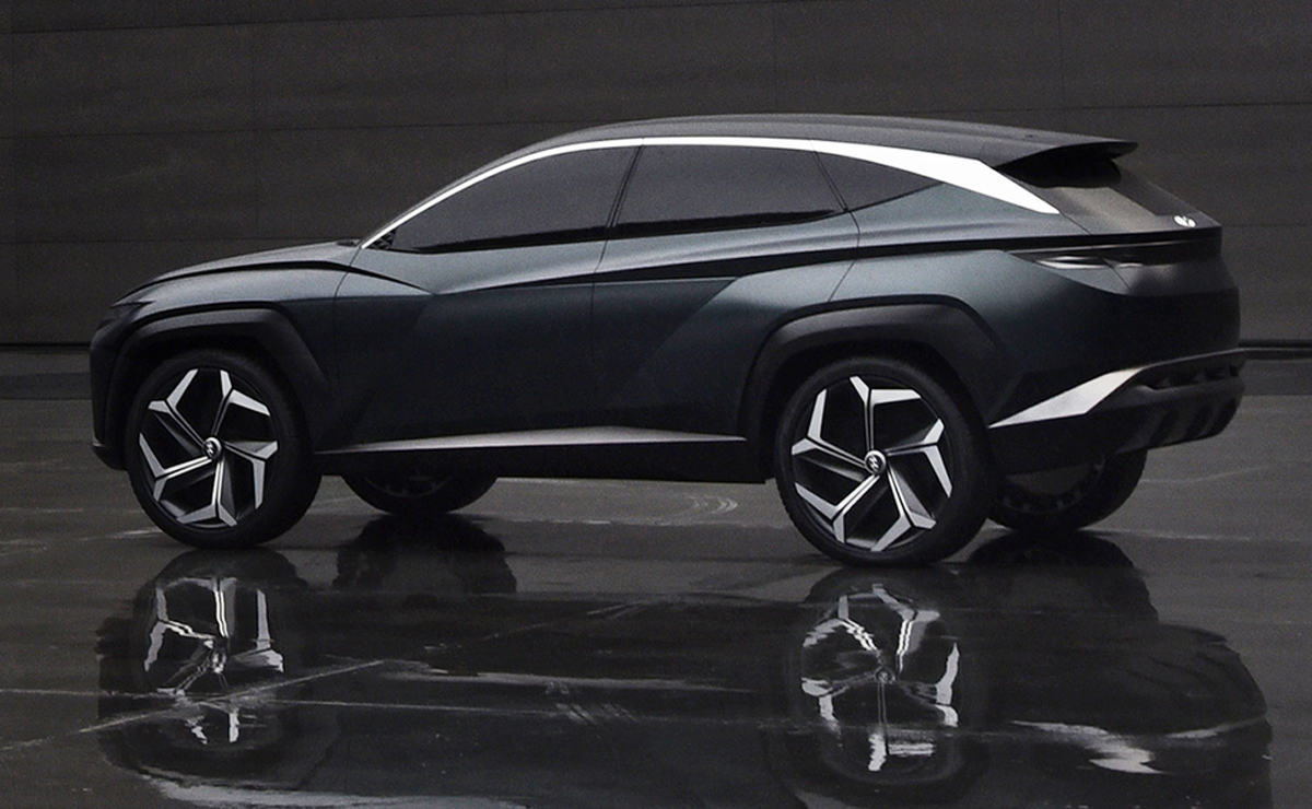 Yfirborðsmeðferð til að skapa meira áberandi útlit getur einnig hjálpað til við að veita bílum Hyundai meiri persónuleika, sagði Lee. „Við munum líka nota einhvers konar vísbendingar sem venjulega eru taldar vera ómögulegar í hönnun, svo sem þríhyrningslaga form eða krossandi áherslulínur,“ sagði hann. Þetta hvoru tveggja er sýnilegt á hliðum Vision T.