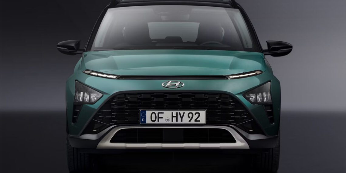 Breiða grillið á Bayon, mjó loftinntök, hátt uppsett framljós og aðskilin dagljós gera litla jeppann að sérstakri í sínum flokki, segir Hyundai.