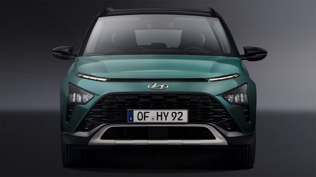 Breiða grillið á Bayon, mjó loftinntök, hátt uppsett framljós og aðskilin dagljós gera litla jeppann að sérstakri í sínum flokki, segir Hyundai.