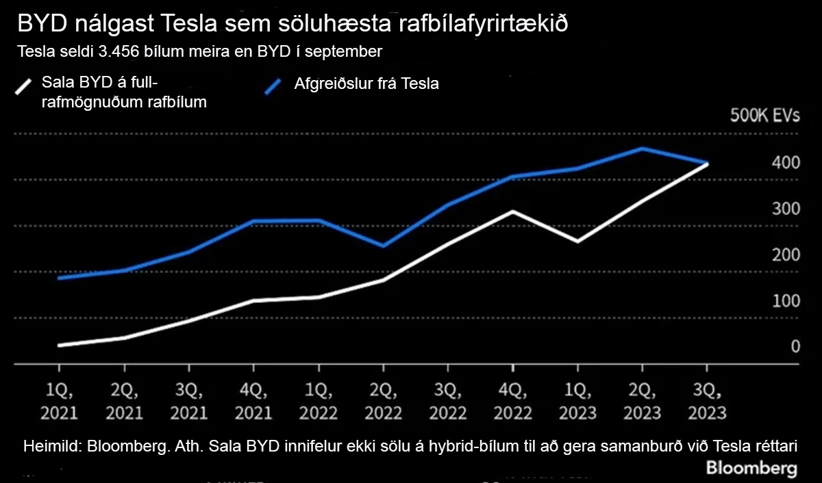 Þessir tveir „BEV risar“ sem munu líklega enda árið með því að selja hvor um sig um 1,8 milljónir rafbíla. Til að setja þetta í samhengi var Toyota, ásamt Lexus, söluhæsti bílaframleiðandi heims á síðasta ári með sölu á 9,6 milljónum bíla, en BEV bílar voru aðeins 25.000 af þeirri sölu.