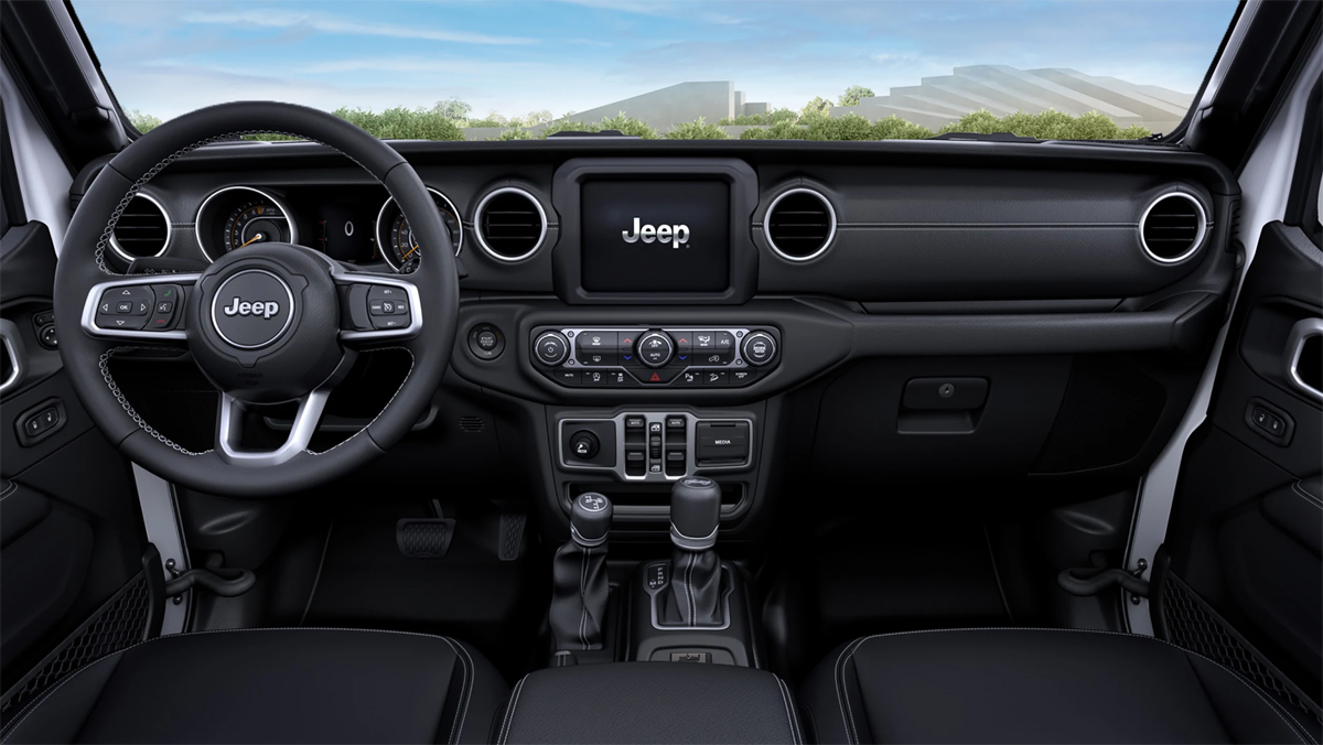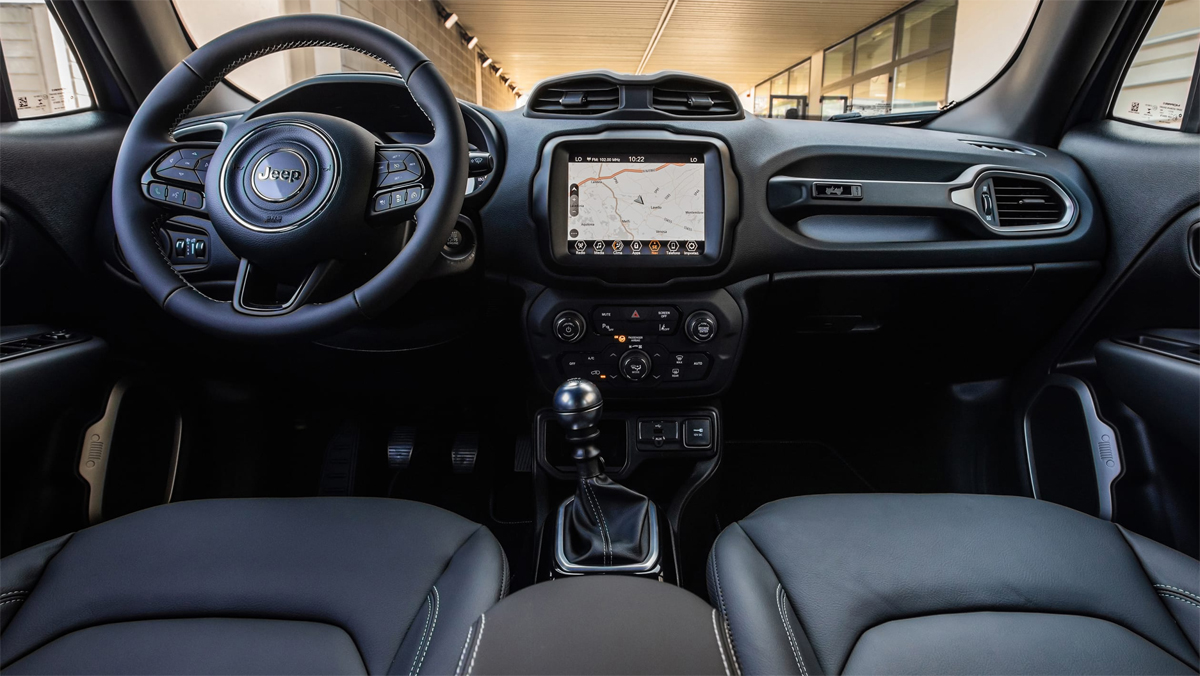 Eins og Renegade fær innnarými Wrangler 8,4 tommu upplýsingaskjá – en hann fær líka fjölda aukabúnaðar. Það er sjö tommu stafræn mælaþyrping, níu hátalara Alpine hljómtæki með 552W subwoofer, þykkteppi og leður á mælaborðinu.