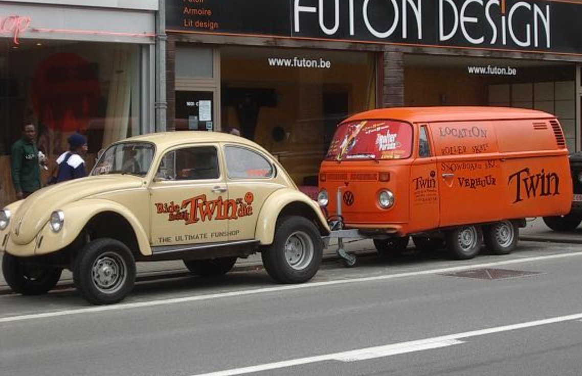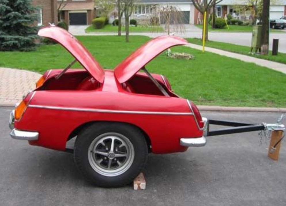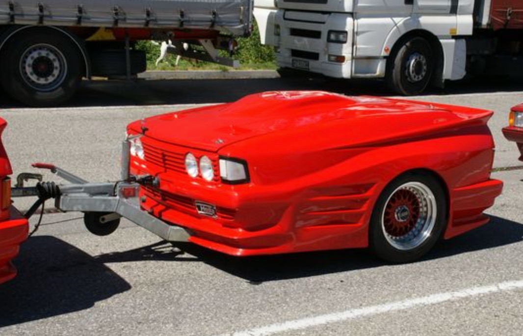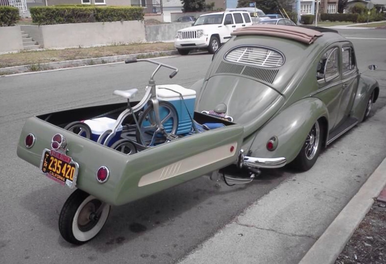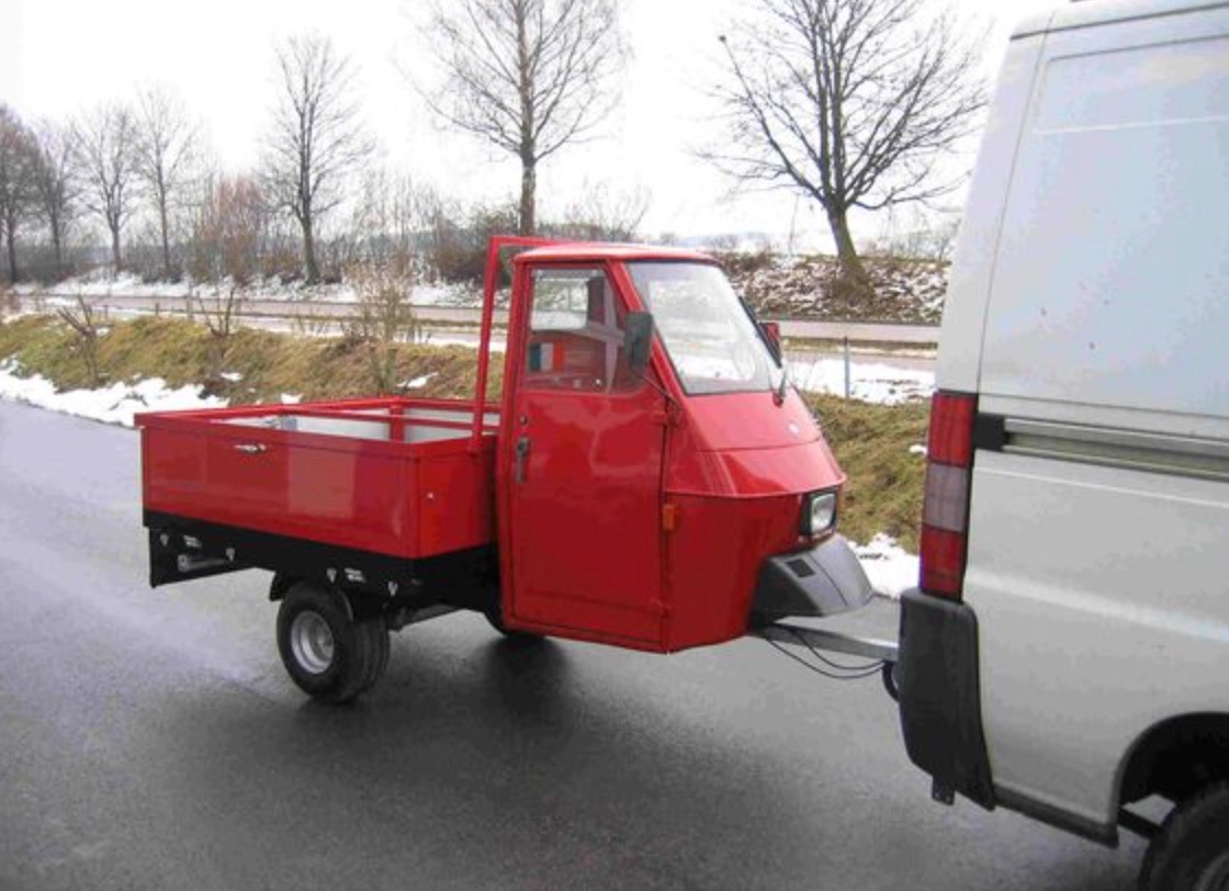 Sumt svipað því sem hér sést á myndum er þó til á Íslandi og varð einn slíkur aftanívagn, eða kerra, á „vegi mínum“ um daginn (nei, ekki í umferðinni – sjá mynd):