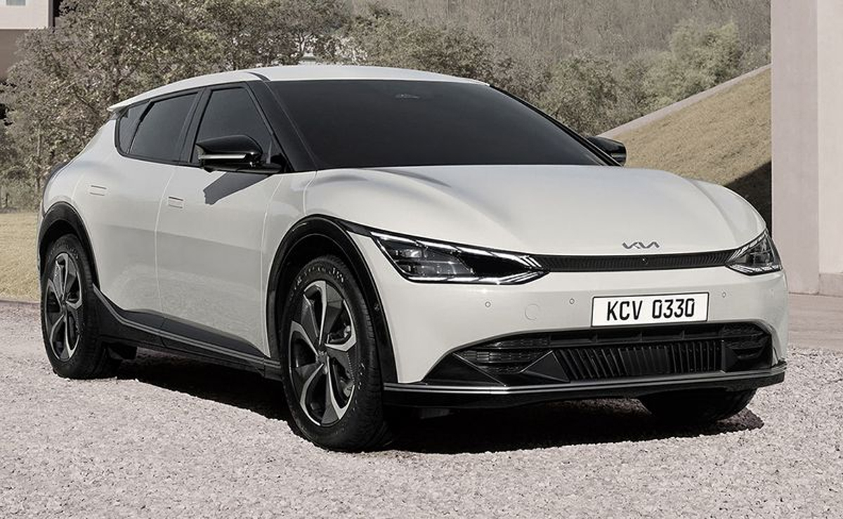 Kia gerði grein fyrir endurskoðun hönnunar á mánudag í Suður-Kóreu, en afhjúpaði fyrstu heildarmyndirnar að utan og innan úr EV6, sem búist er við að verði settur á markað í lok mánaðarins.