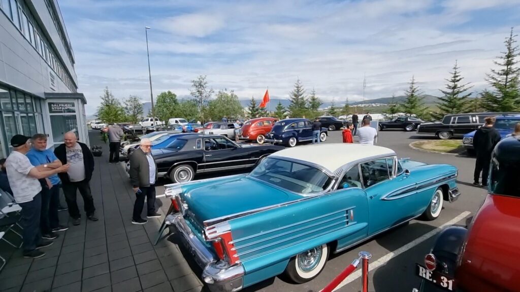 Við tókum nokkra bíleigendur tali og báðum þá um að segja okkur sögu bíla sinna. Það var bæði fróðlegt og skemmtilegt að spjalla við þessa félaga í Krúser klúbbnum. Sá þáttur verður sýndur innan fárra daga hér á vefnum.