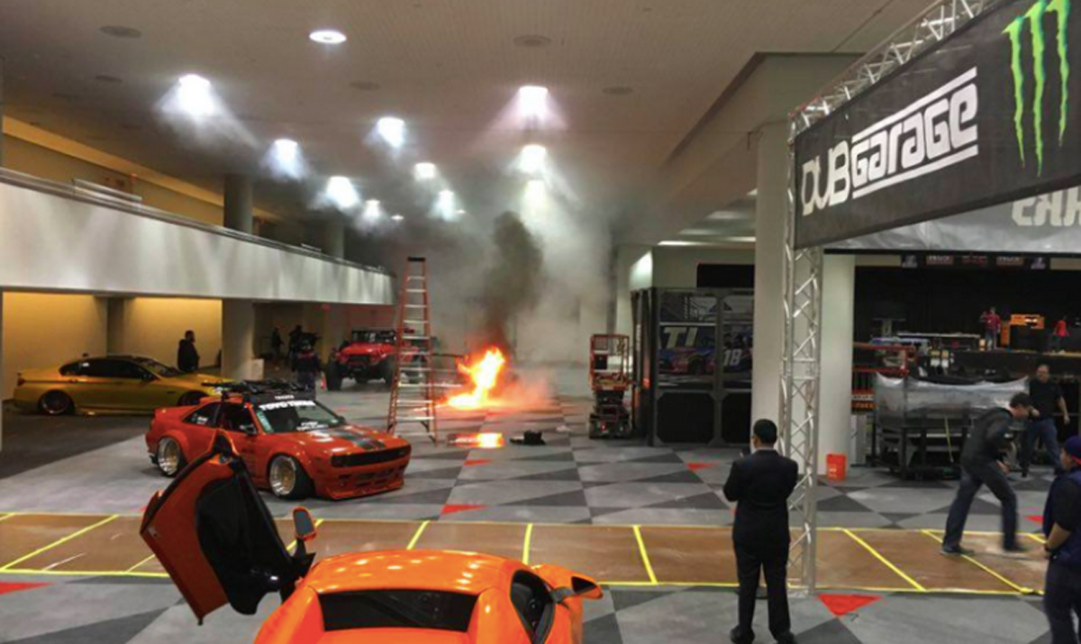 Bílasýningin í Guangzhou 2022 stendur yfir í Kína núna og hófst frekar með látum með miklum eldi í einum af sýningarbásum framleiðenda.