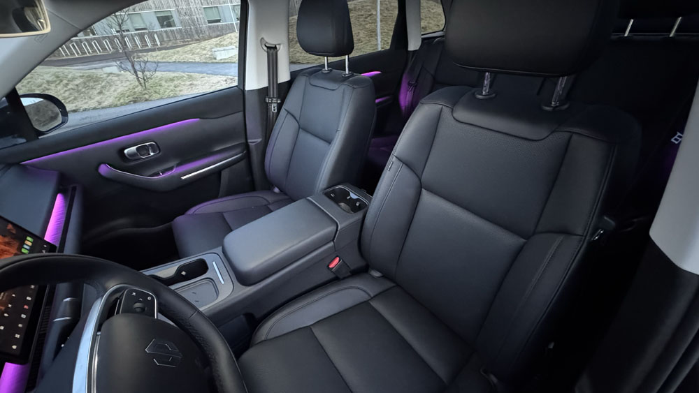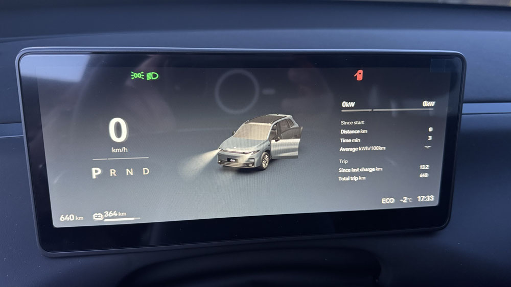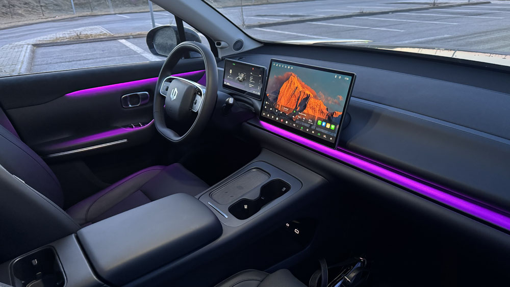 Efnisval er gott og það á við um allar gerðir Leapmotor. Sætin eru þægileg og bjóða upp á bæði hita og kælingu í framsætum. Panorama glerþakið gerir innanrýmið bjart og opið, og hljóðkerfið með 12 hátölurum skilar fínni upplifun – þó það nái ekki alveg toppnum í þessum flokki.