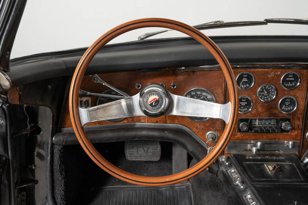 Frumleg innréttingin er með ógrynni fínlegra smáatriða sem tekið er eftir. Tréstýrið og mælaborðið er stílhreint og kalla fram klassískt útlit. Vasar í hurðunum er frumleg hönnun sem og sætin í bílnum. Armpúðarnir hafa verið endurgerðir. Og saga bílsins liggur fyrir – þökk sé núverandi eiganda hans til langs tíma.