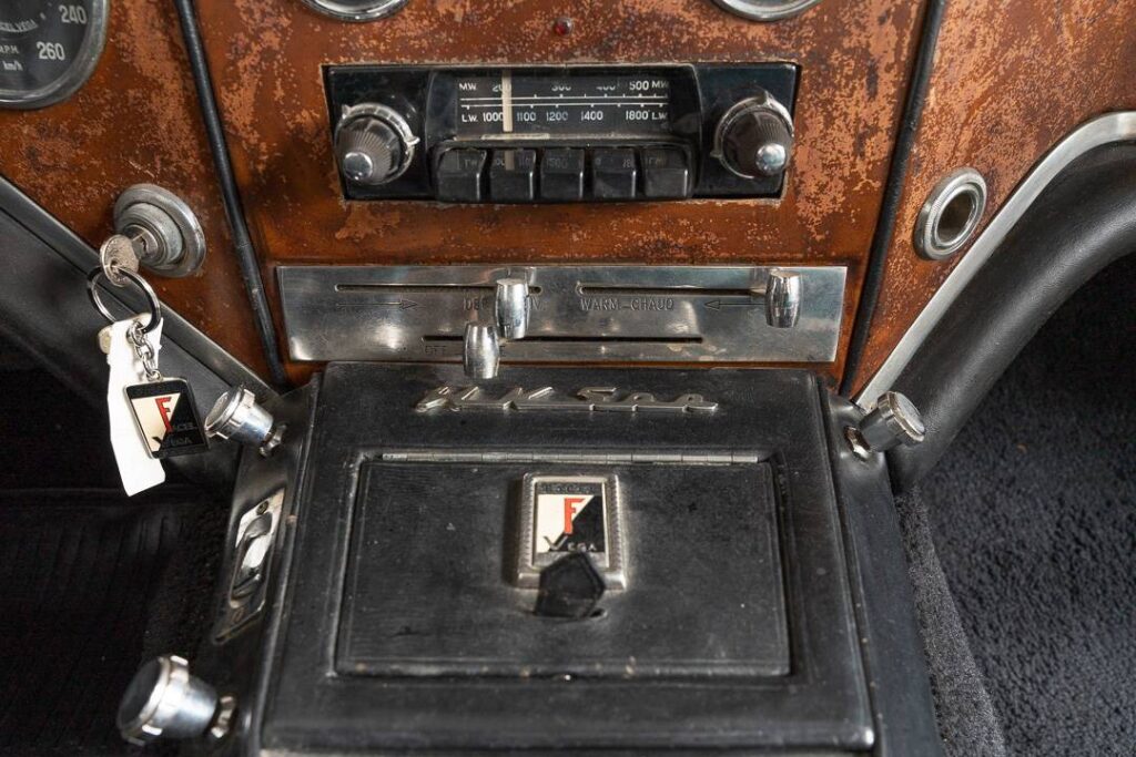 Þessi Facel Vega HK500 er í toppstandi segir í sölulýsingu. Í vélarsalnum leynist 5,9 lítra Chrysler V8 vél sem gefur 334 hestöfl. Vélin var sérstaklega smíðuð í Bandaríkjunum fyrir Facel Vega gerðirnar. Vélin er með þriggja gíra sjálfskiptingu sem stjórnað er með þrýstihnöppum. Og vegna aflmikillar vélarinnar er bíllinn búinn diskabremsum allan hringinn, sem var nýjung á þeim tíma sem bíllinn var kynntur. Eins og flestir vita er þetta staðalbúnaður í dag.