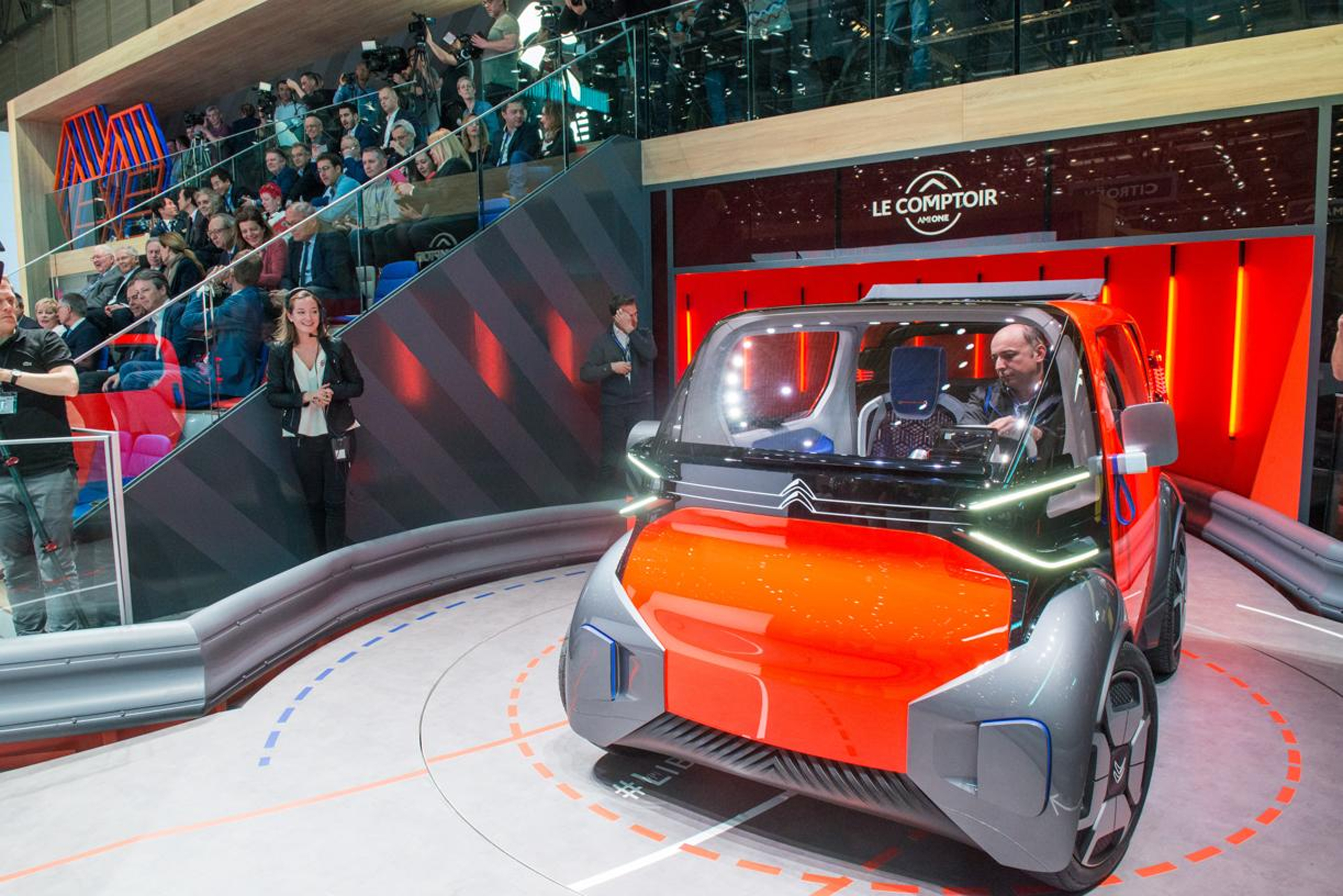 Lítill rafdrifinn hugmyndabíll frá franska framleiðandanum Citroën sló eiginlega í gegn að mati margra á bílasýningunni í Genf á dögunum, og var að mati sumra fullsæmdur af því að vera kallaður „ljóti andarunginn“. Þessi smábíll sem þeir nefna „AMI One“er tveggja sæta og nær 45 kílómetra hámarkshraða á klukkustund og drægnin á rafhlöðunum er 100 kílómetrar í hverri ökuferð áður en rafhlöðurnar tæmast.
