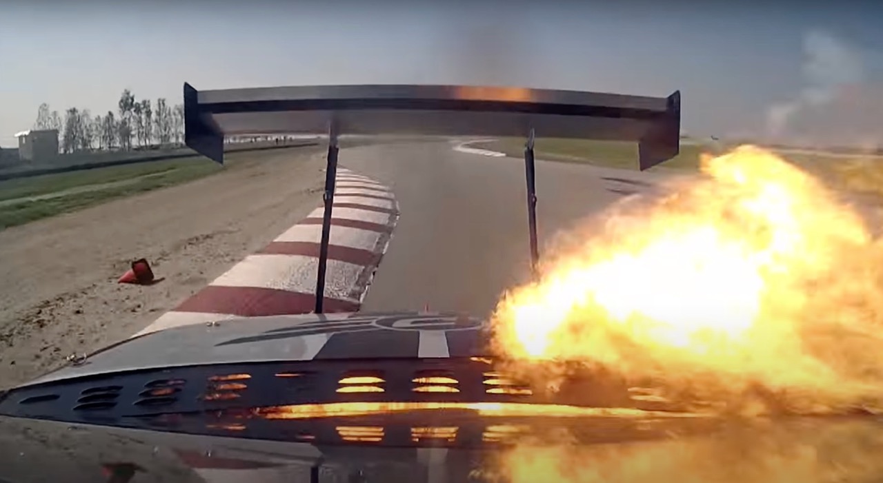 Eins og það sé ekki nógu erfitt að sjá út fyrir spoilernum þarna að framan (er sko bæði með að framan og aftan) heldur kviknar líka í og þá sést nú bara ekki neitt!
