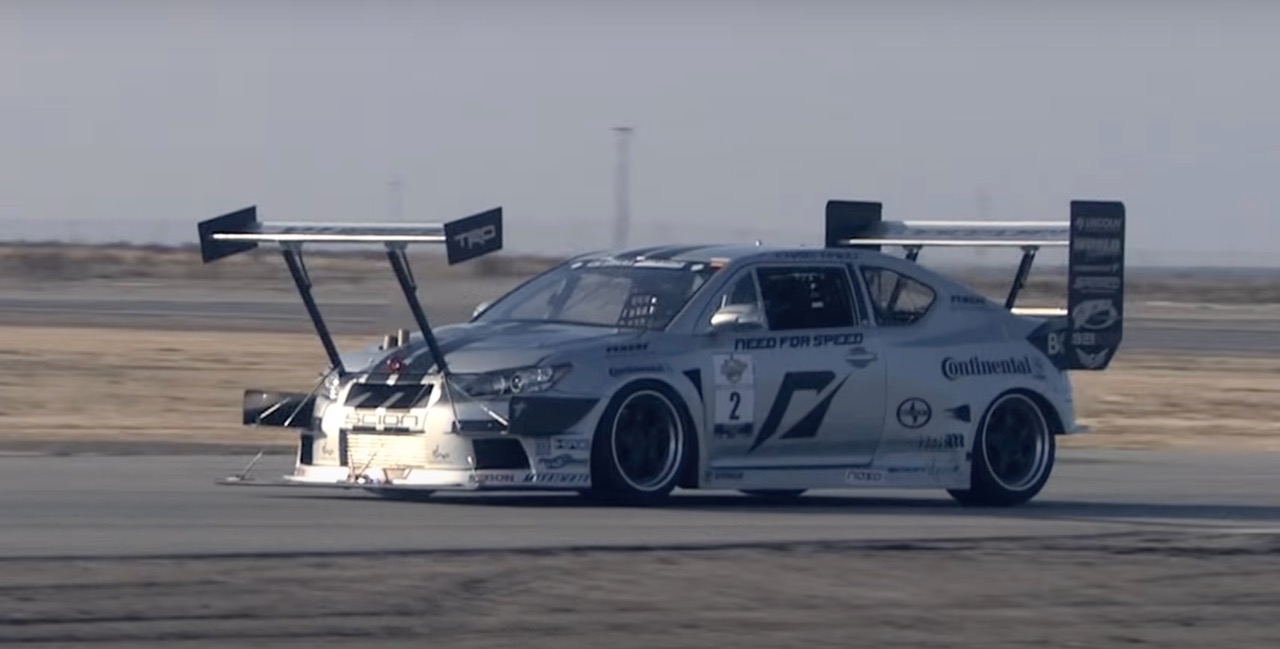 Chris þessi Rado hefur sett ýmis met og slegið önnur á sínum 1200 – 1400 hestafla Scion en eitthvað virðist hann sjá og skilja sem mögum öðrum er hulið. Honum hefur í það minnsta tekist ýmislegt sem öðrum hefur ekki tekist. Og það á sínum framhjóladrifnu furðubílum.