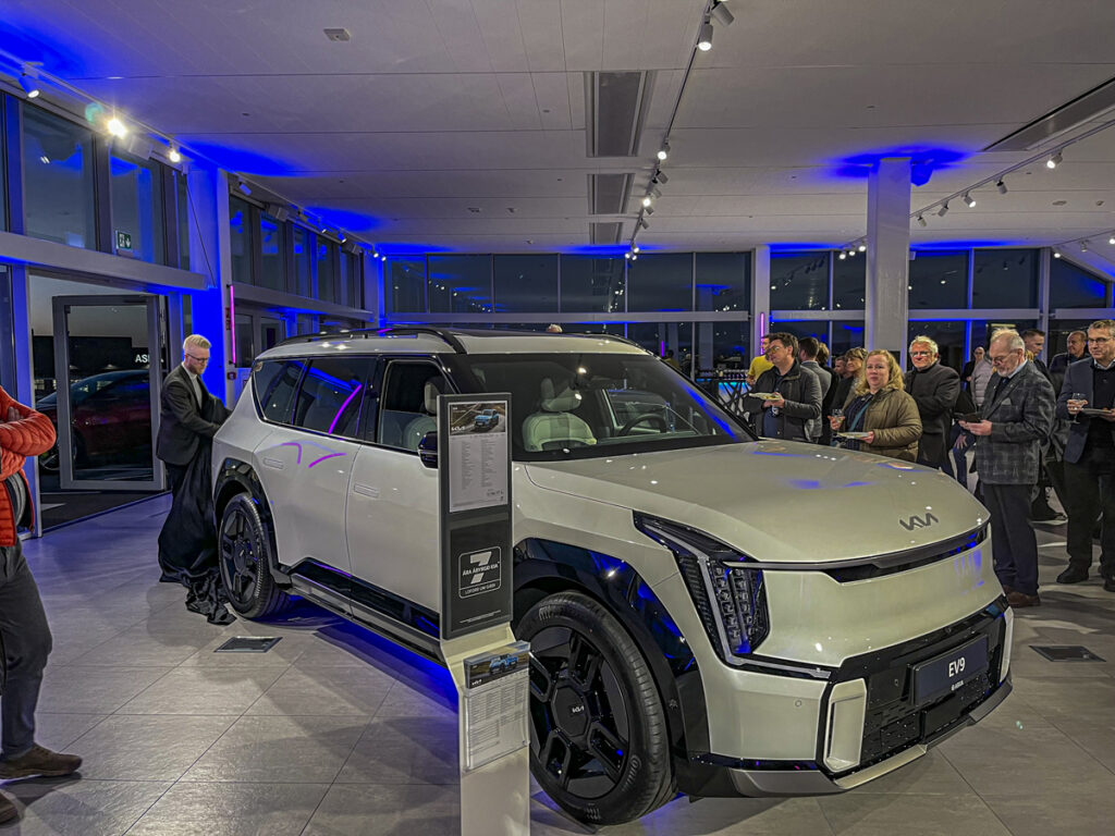 Það ríkti greinilega eftirvænting á sýningarsal Kia við Krókhálsinn á fimmtudaginn, en í salnum stóðu nokkrir stæðilegir rafdrifnir sportjeppar undir yfirbreiðslum. Og eftir stutta kynningu á bílnum voru yfirbreiðslurnar dregnar af og það var hægt að virða bílana betur fyrir sér.