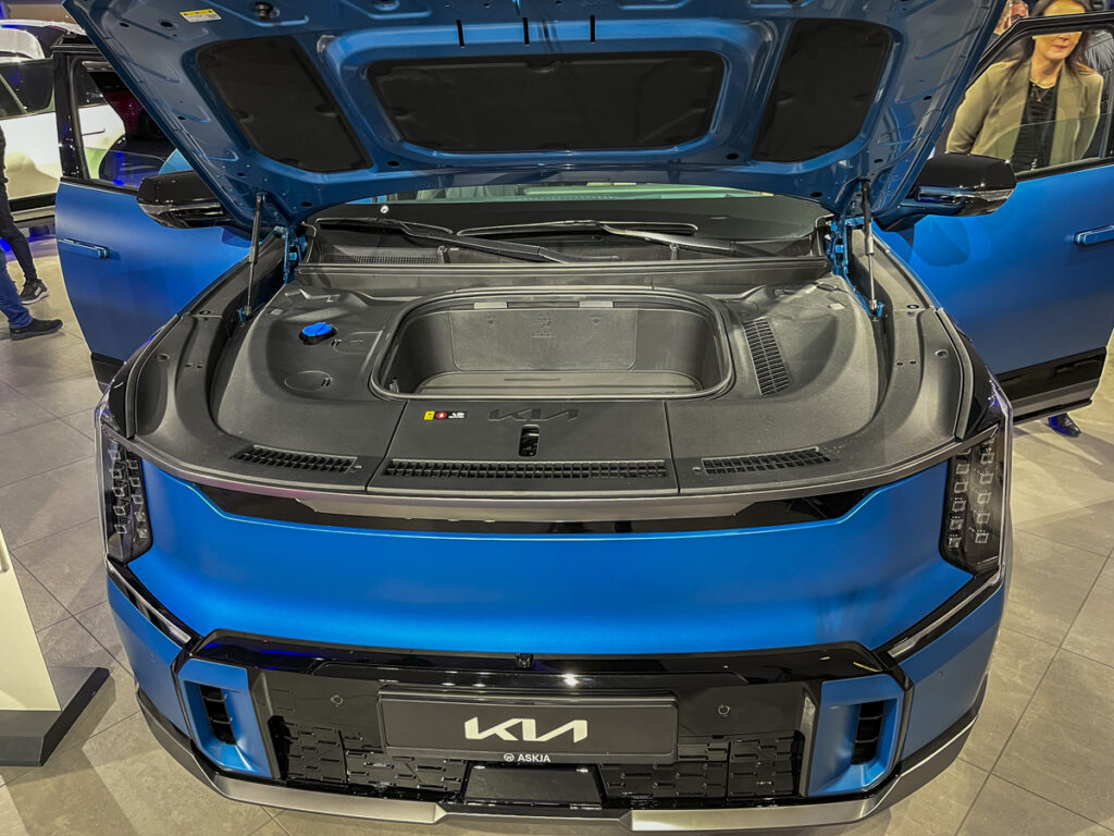 Búnaðarlistinn á þessum bíl er mjög flottur og vandséð hvað gæti vantað í svona bíl. EV9 er að sjálfsögðu fjórhjóladrifinn, 384 hestöfl, rafhlaðan er 99,8 kW og drægnin er allt að 505 km. Hröðunin er dágóð, eða 5,3 sekúndur 0 til 100 km/klst.