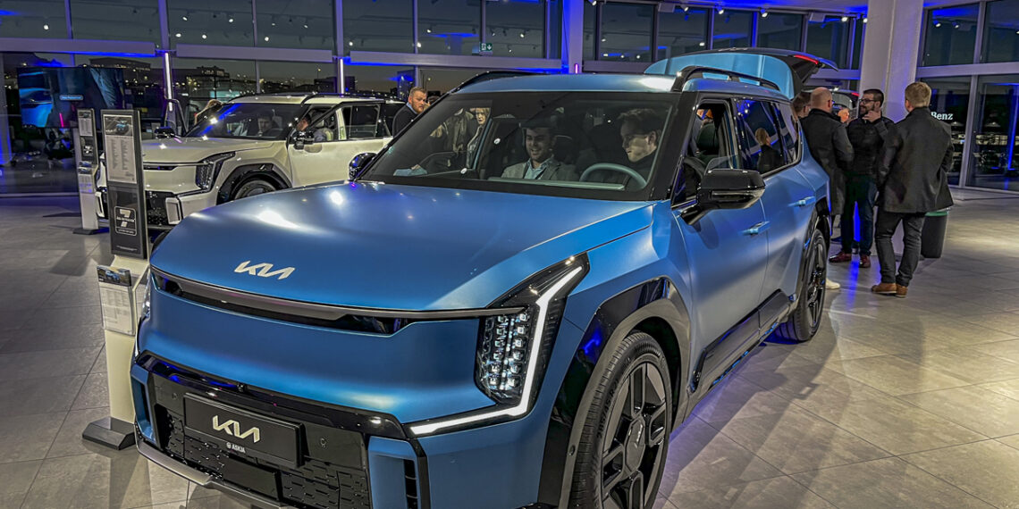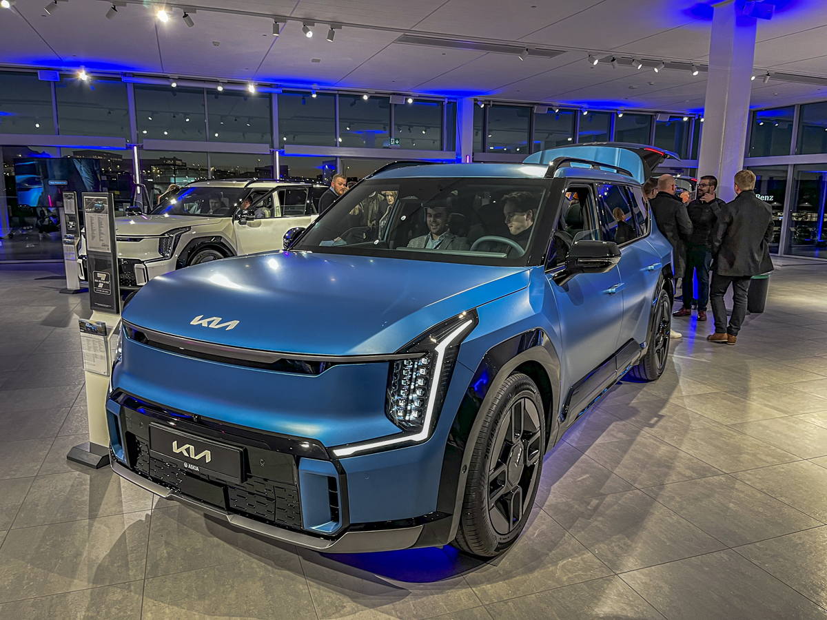 Það ríkti greinilega eftirvænting á sýningarsal Kia við Krókhálsinn á fimmtudaginn, en í salnum stóðu nokkrir stæðilegir rafdrifnir sportjeppar undir yfirbreiðslum. Og eftir stutta kynningu á bílnum voru yfirbreiðslurnar dregnar af og það var hægt að virða bílana betur fyrir sér.