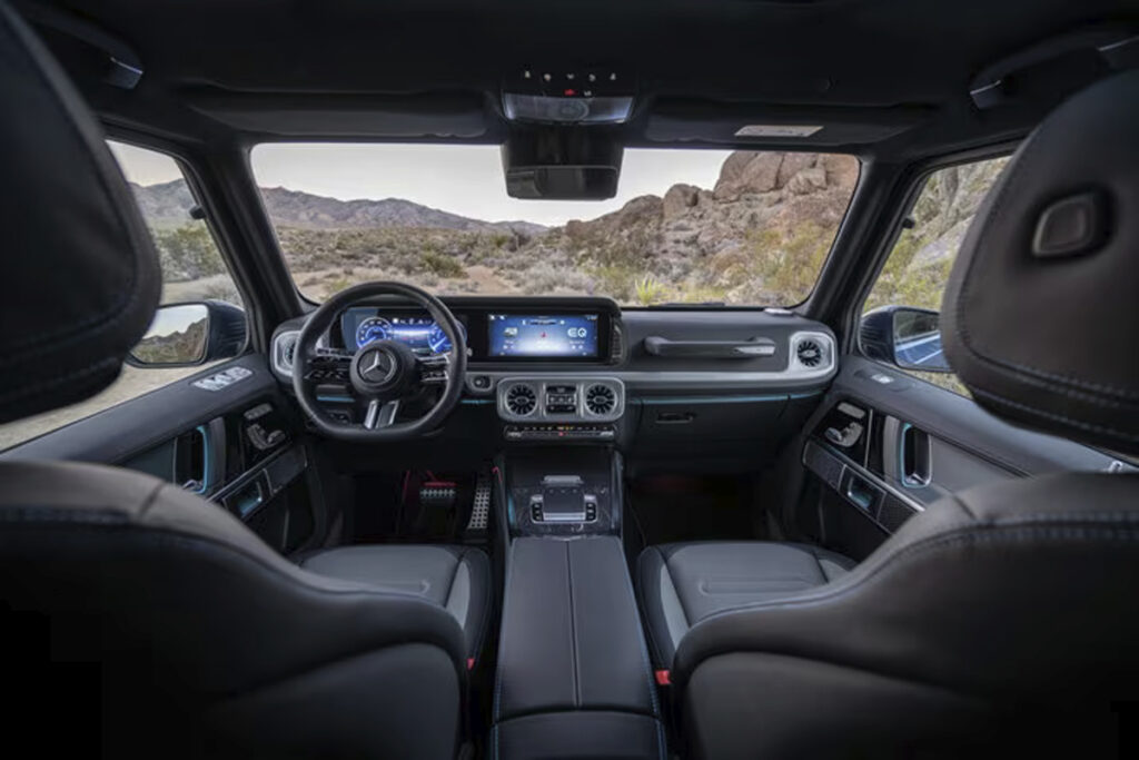 - G 580 heldur hinni þekktu hönnun „stigagrindar“ en sleppir brunavél fyrir fjóra rafmótora og öfluga 116 kílóvattstunda rafhlöðu.