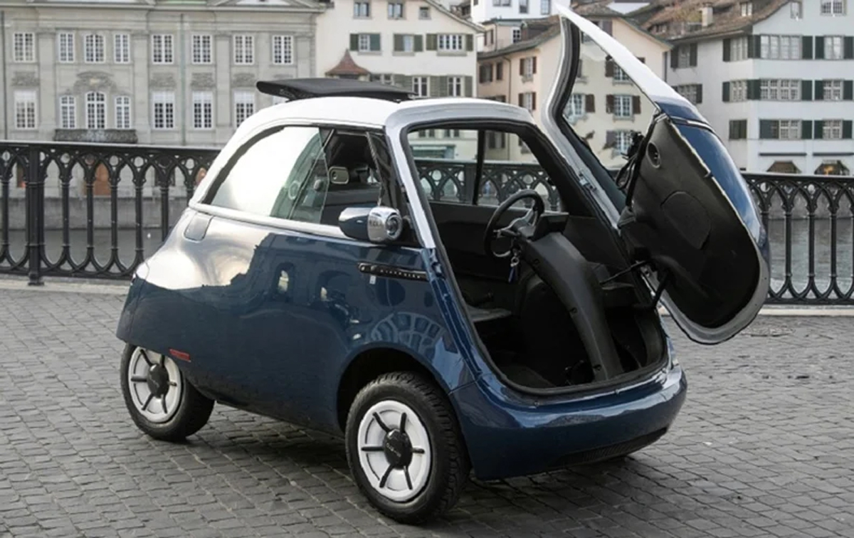 Létt þyngd hans – 496 kg – og lítil stærð – 2,5 metrar að lengd – dregur úr umhverfisáhrifum ökutækisins og gerir það auðveldara að leggja í pínulitlum rýmum, sagði Oliver Ouboter, rekstrarstjóri hjá Microlino.