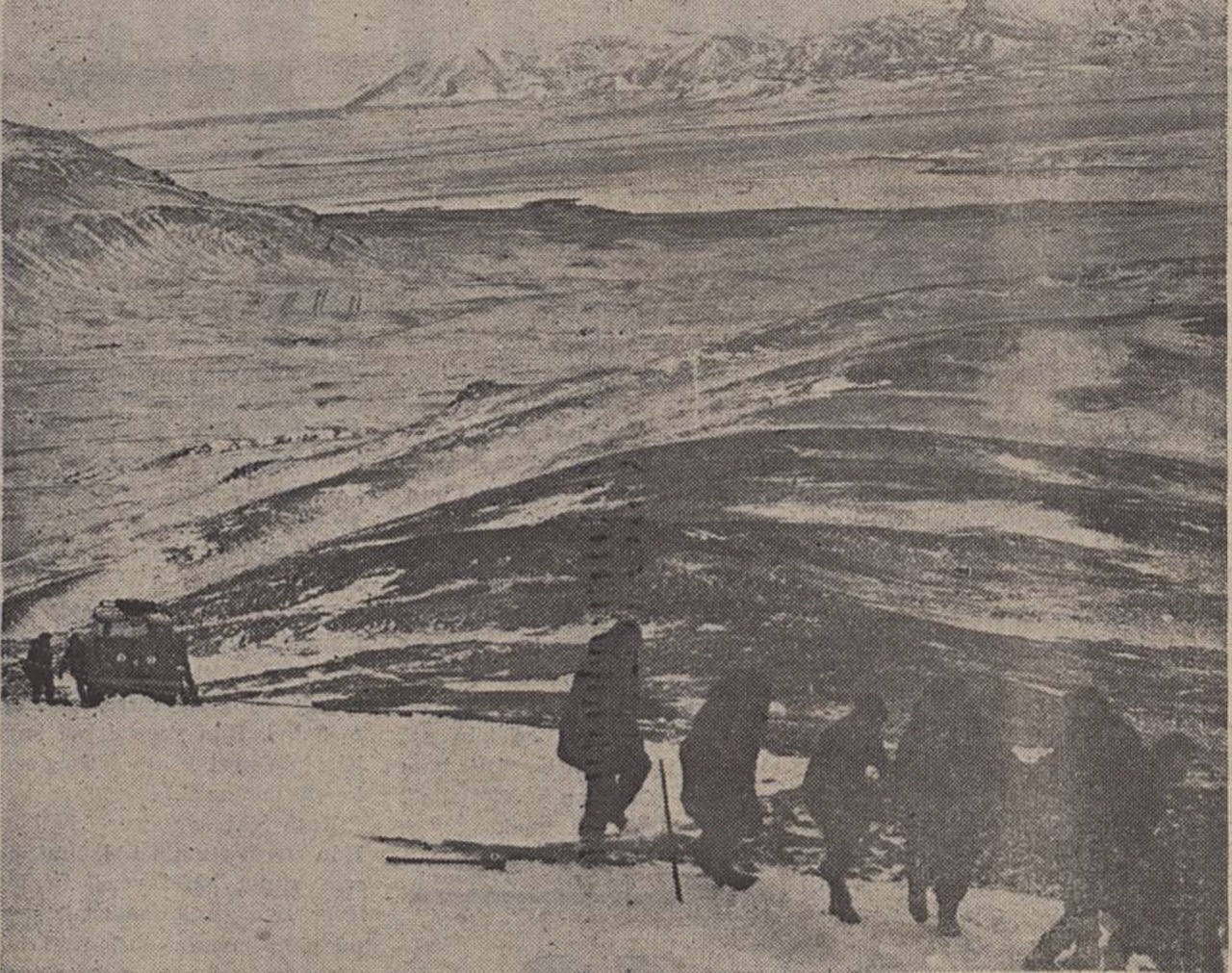 Myndin sem birtist með fréttinni í Alþýðublaðinu. Þarna má sjá Land Roverinn sem Níels Hauksson ók þennan merka sunnudag í janúarmánuði 1965.