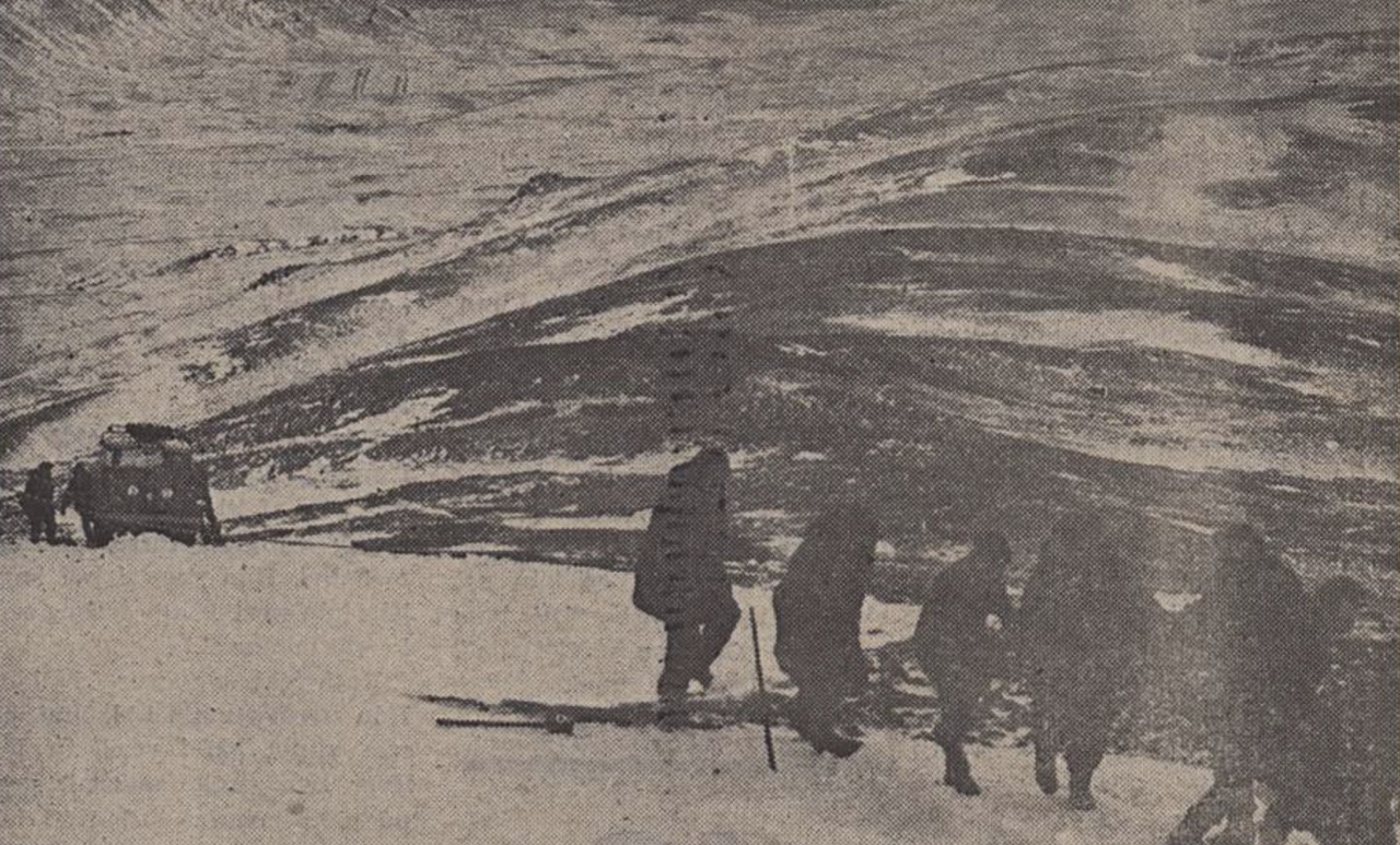 Myndin sem birtist með fréttinni í Alþýðublaðinu. Þarna má sjá Land Roverinn sem Níels Hauksson ók þennan merka sunnudag í janúarmánuði 1965.