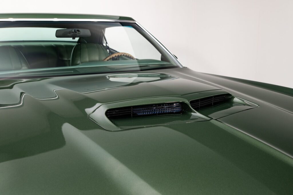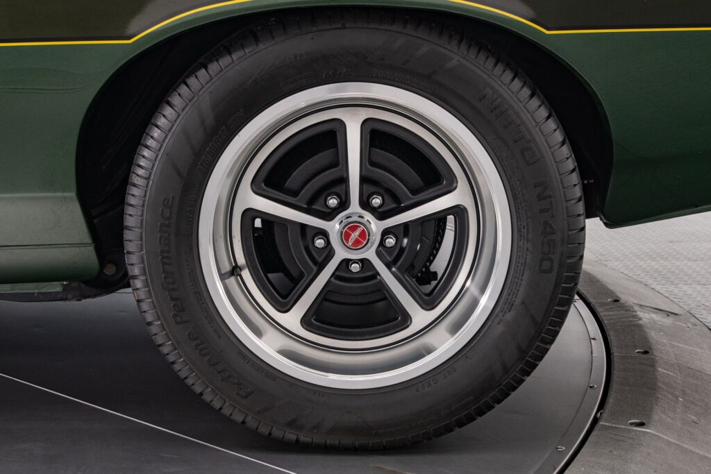 Meðal þess sem reynt var að halda í var græni liturinn og gulu strípurnar en segja má að það hafi tekist vonum framar – enda mikið sérkenni á bílnum.