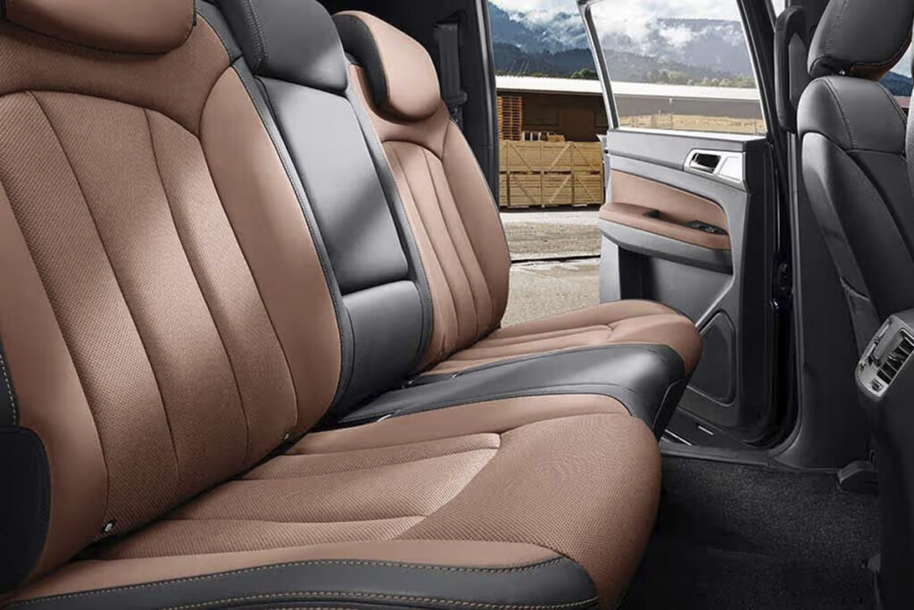 Musso Grand kemur með fimm punkta gormafjöðrun að aftan sem eykur stöðuleika og bætir akstureiginleika á ójöfnum vegum. Mögulegt er að fá blaðfjöðrun í staðinn, fyrir þá sem vilja meiri burðargetu, en hámarksburðargeta er 1.025 kg og dráttargeta er allt að 3.500 kg. Tvær pallalengdir eru boði, 130 cm og 161 cm sem er þá nokkuð lengri en aðrir Pallbílar í þessum flokki