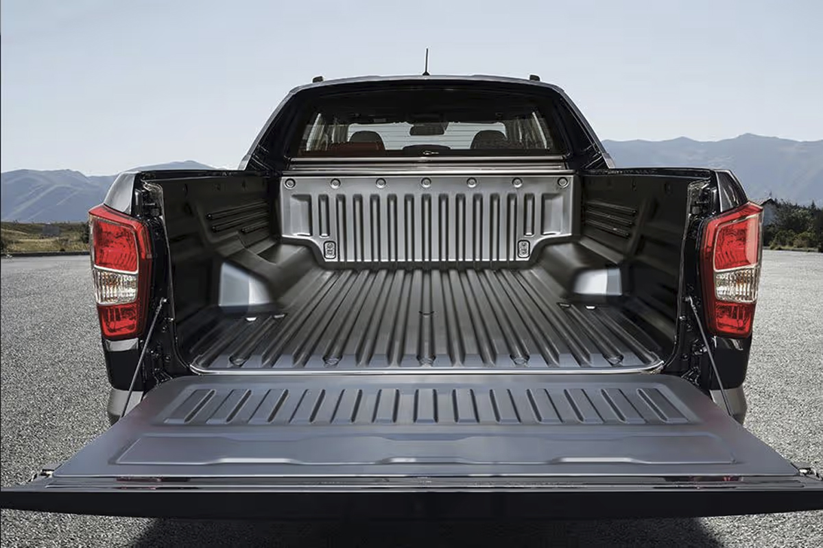 Musso Grand kemur með fimm punkta gormafjöðrun að aftan sem eykur stöðuleika og bætir akstureiginleika á ójöfnum vegum. Mögulegt er að fá blaðfjöðrun í staðinn, fyrir þá sem vilja meiri burðargetu, en hámarksburðargeta er 1.025 kg og dráttargeta er allt að 3.500 kg. Tvær pallalengdir eru boði, 130 cm og 161 cm sem er þá nokkuð lengri en aðrir Pallbílar í þessum flokki