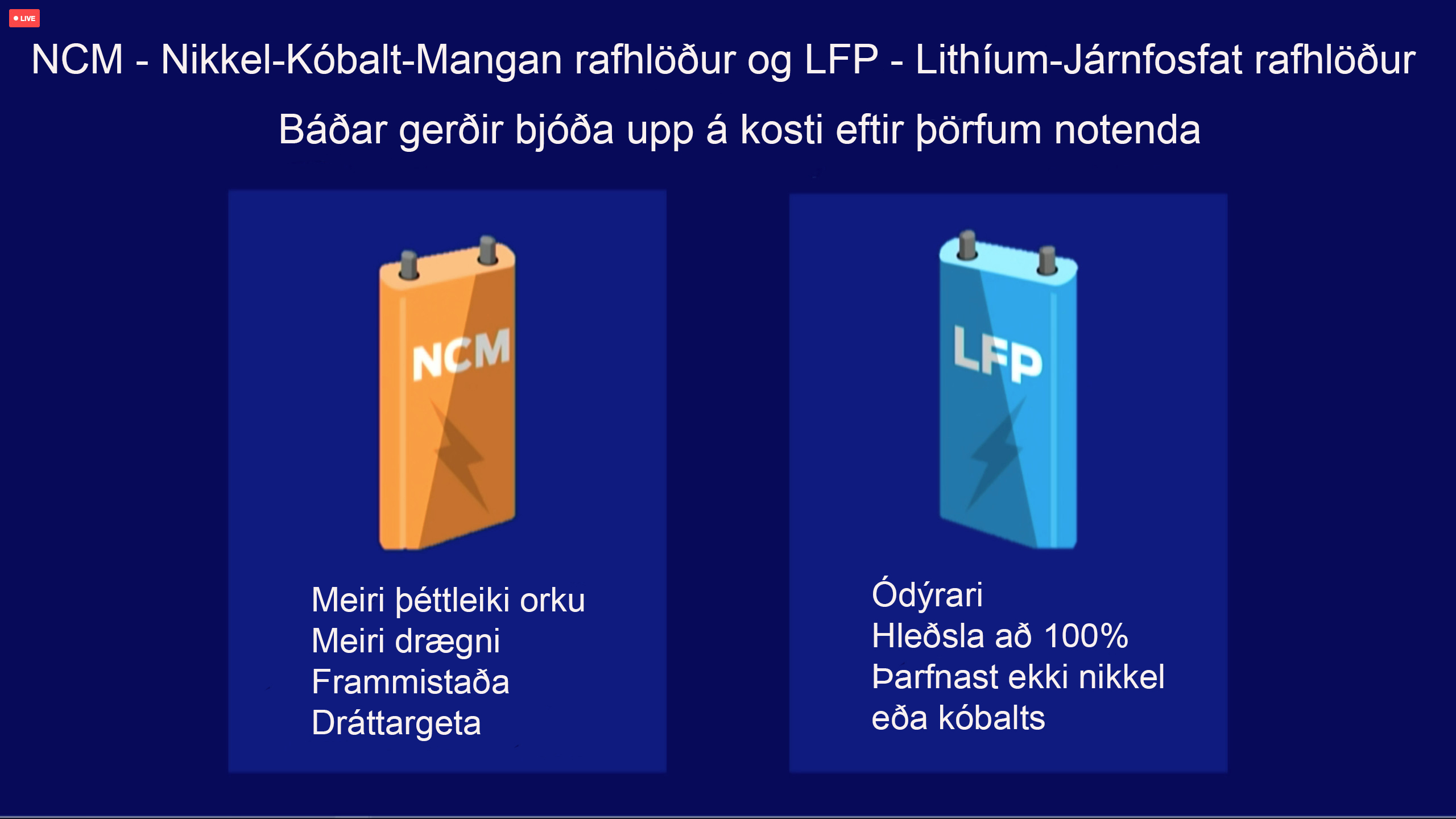 Enn sem komið eru fáir bílaframleiðenda að nota hinar svokölluðu LFP rafhlöður.