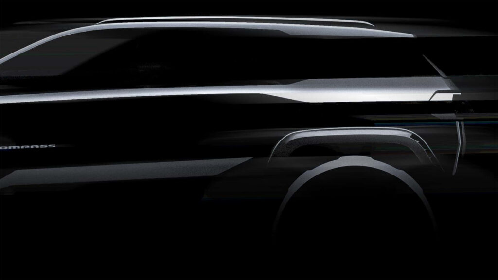 Hönnun næstu kynslóðar Compass, sem er þróun á stílþema sem hófst með nýja Avenger litla jeppanum, er með skarpar línur, kassalaga hlutföll og endurskoðaða túlkun á grilli jeppaframleiðandans.