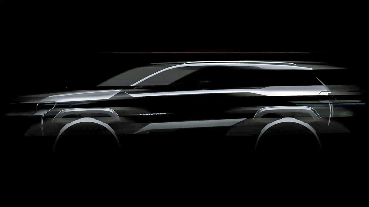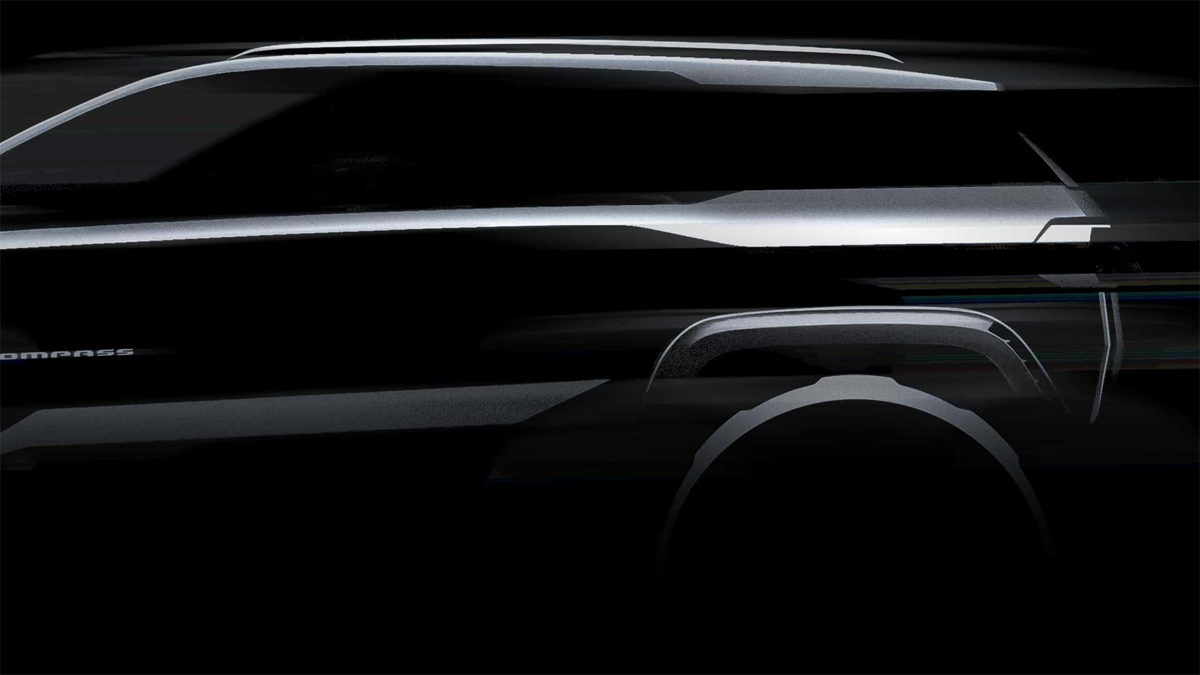 Hönnun næstu kynslóðar Compass, sem er þróun á stílþema sem hófst með nýja Avenger litla jeppanum, er með skarpar línur, kassalaga hlutföll og endurskoðaða túlkun á grilli jeppaframleiðandans.