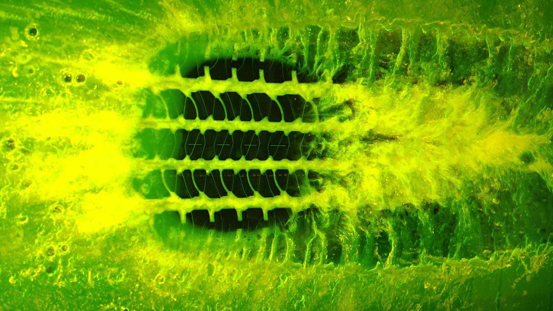 Hér má sjá snertiflöt hjólbarða á mismunandi hraða. Lengst til vinstri er snertiflötur á hægum hraða. Við sjáum að nokkuð stór hluti mynstursins á hjólbarðanum nær snertingu við yfirborðið. Í miðju er snertiflöturinn farinn að minnka þegar ekið er á miðlungshraða. Yst til hægri er snertiflötur hjólbarða á hámarkshraða (um 90 km) og þá sést vel að snertiflöturinn er aðeins lófastór blettur.
