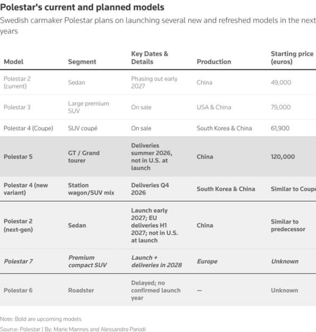 Þetta yfirlit sýnir áætlun Polestar. Heimild: Reuters/Polestar