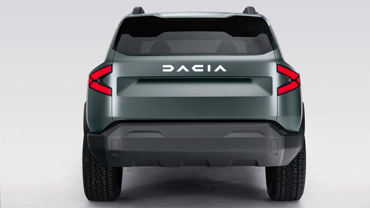 Að aftan eru Y-laga afturljós ásamt einfaldir útlitshönnun á afturhleranum sem er með stóra útgáfu af nýja Dacia-merkinu.
