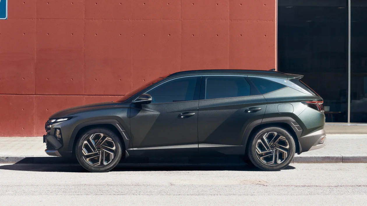 Sérstök „Jewel Hidden Lights“ að framan hafa verið lagfærð, sem og grillið og neðri stuðarinn – en á heildina litið er hann auðþekkjanlegur sem Tucson. Kantarnir eru með hjólbogaframlengingum í andstæðum gráum lit, en á sportlegri útgáfum eins og N-Line ættu þær aftur að vera málaðar í sama lit og yfirbyggingin. Það eru líka endurhannaðar álfelgur og að aftan er Tucson nú með stærri plötur innbyggðar í stuðarann.
