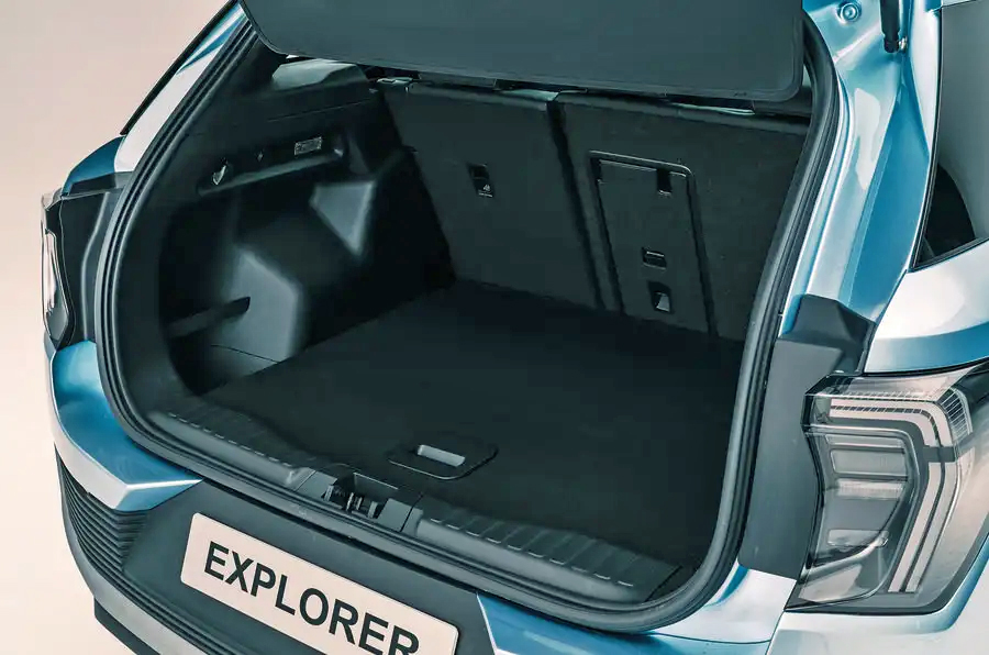 Það er engin geymsla undir vélarhlífinni en líkt og Puma er Explorer búinn „leynilegu“ hleðslurými undir farangursgólfinu og 17 lítra „Megaconsole“ geymsluhólfi á milli tveggja framsætanna er eitt hið stærsta sem hægt er að koma fyrir í framleiðslubíll.