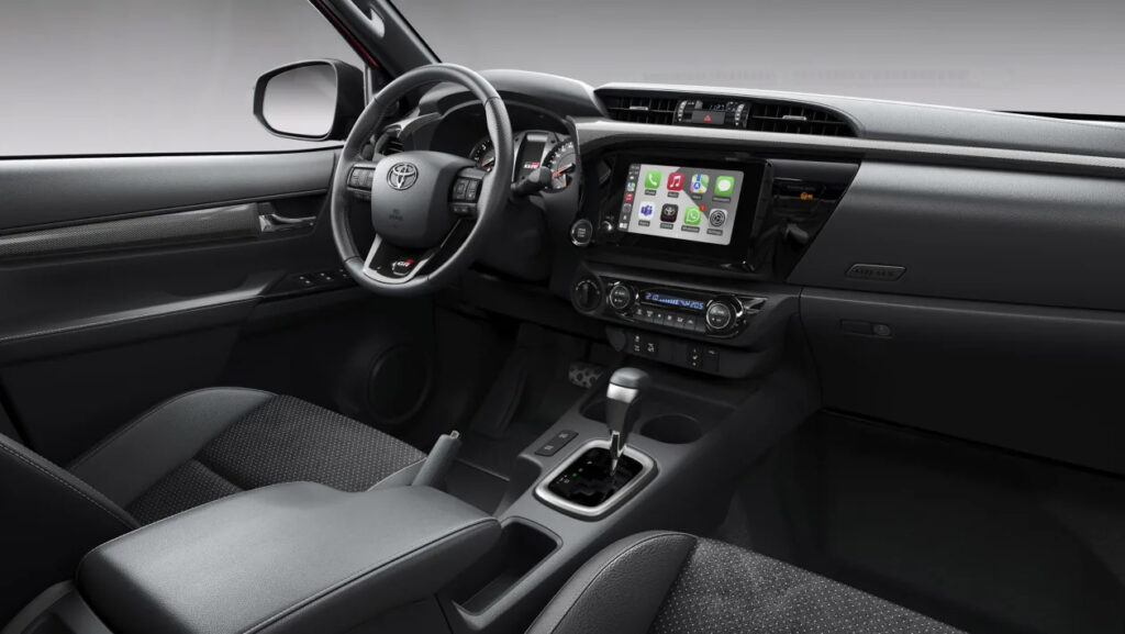 Til að fullkomna hágæða útlit og tilfinningu Hilux GR SPORT II farþegarýmisins er nýtt skraut á hurðarklæðningu og mælaborði, sem einnig inniheldur GR upplýsingar á upplýsingaskjá og tækjabúnaði.