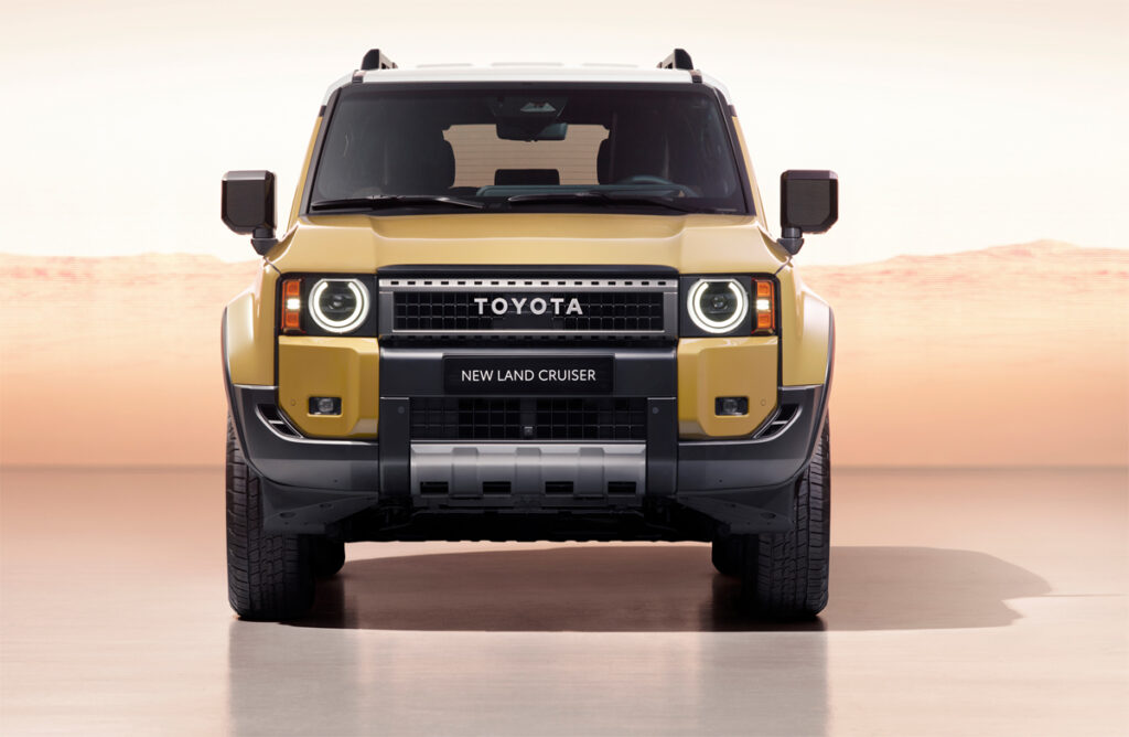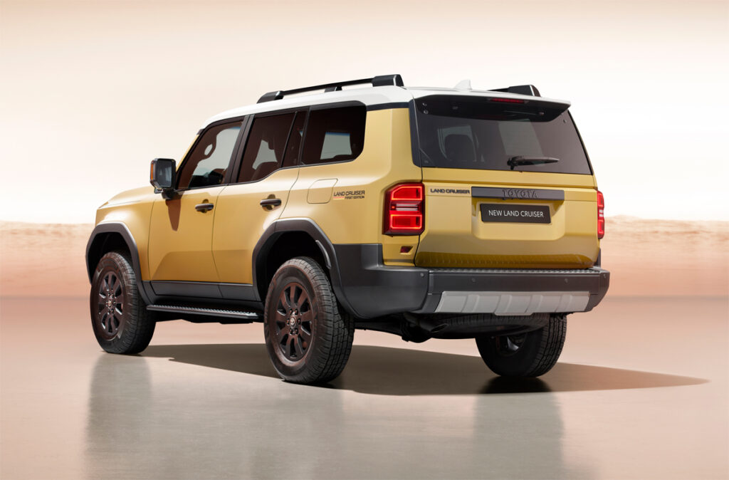 Gerðin er hönnuð með augljósum áhrifum frá fyrri Land Cruiser og með öflugum tveggja kassa prófíl sem undirstrikar „getu bílsins til að standast erfiðar aðstæður“ og leggur aftur áherslu á hagkvæmni, endingu og áreiðanleika.