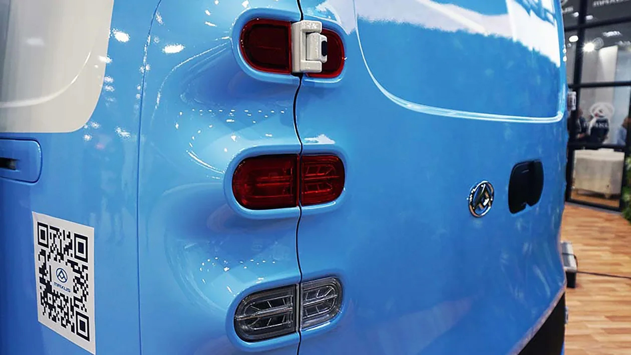 Yfirbygging sendibílsins er með tvöföldum hliðarrennihurðum og tveimur opnum að aftan, en festingaraugum er komið fyrir til að festa hluti að aftan.