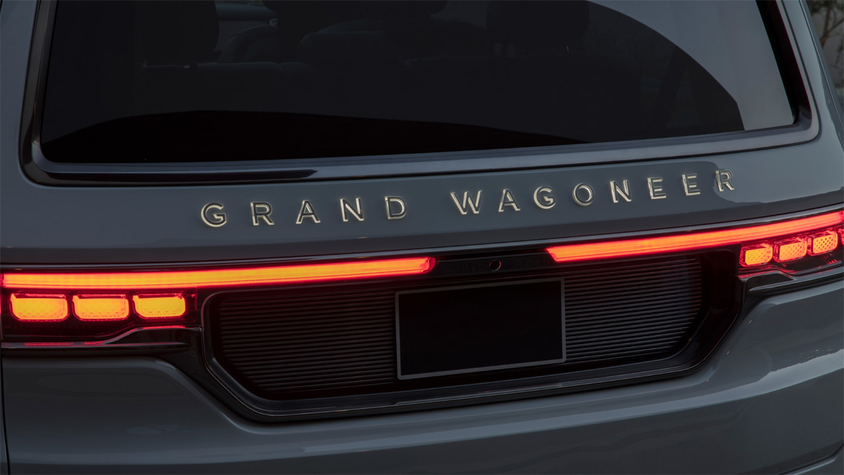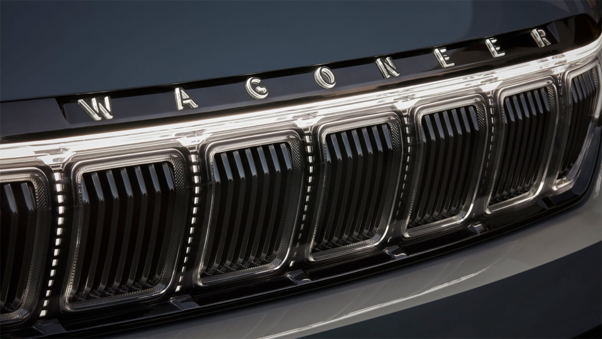Sem tilvísun til upprunalega Grand Wagoneer, sem var með viðarklæðningu á hliðum, eru aðalljósin á þessari nýju gerð innfelld í ósvikinn tekkvið. Festingarlykkjurnar á þakbrautum jeppans eru einnig með tekki en ytri brún mælaborðsins er með áletrun sem markar upphafsdag hins sígilda Wagoneer.