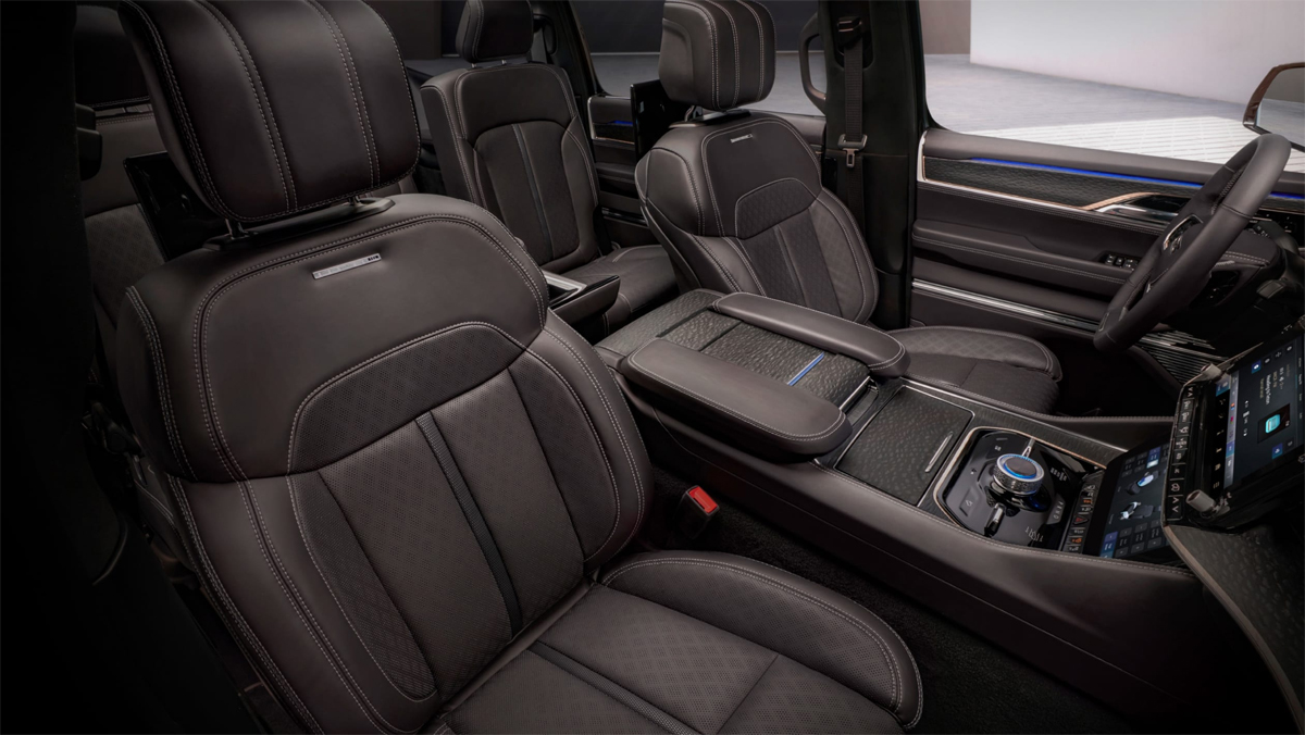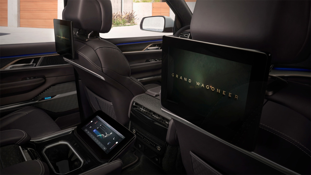 Tæknin er líka til staðar í aftursætunum, með öðru 10,25 tommu loftslagsstjórnborði og par af 10,1 tommu upplýsingaskjám til að þjónusta hvert af sætunum sem eru sjálfstæðir „skipstjórastólar“. Jeep kláraði uppsetningu afþreyingar í Wagoneer með 23 hátalara McIntosh úrvals hljóðkerfi og 24 rása magnara.