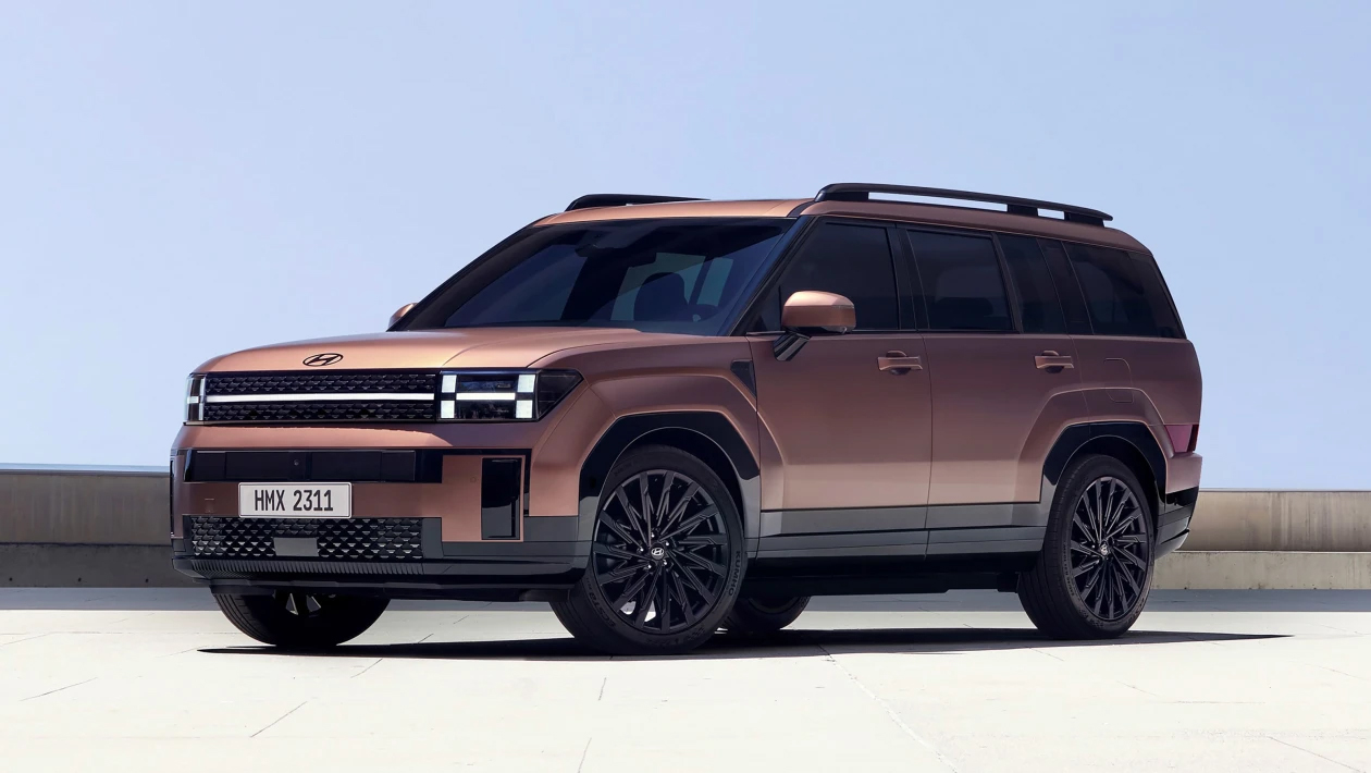 Valkostur við væntanlegan alrafmagnaða Ioniq 7 sportjeppann, fær Santa Fe einhverja Ioniq-innblásna hönnun sem blómstrar eins og kantað yfirborð, slétt framhlið og með LED ljósastiku í fullri breidd. Hyundai segir að „H-laga“ framljósin „samræmist H-mótífinu“ á framstuðaranum.