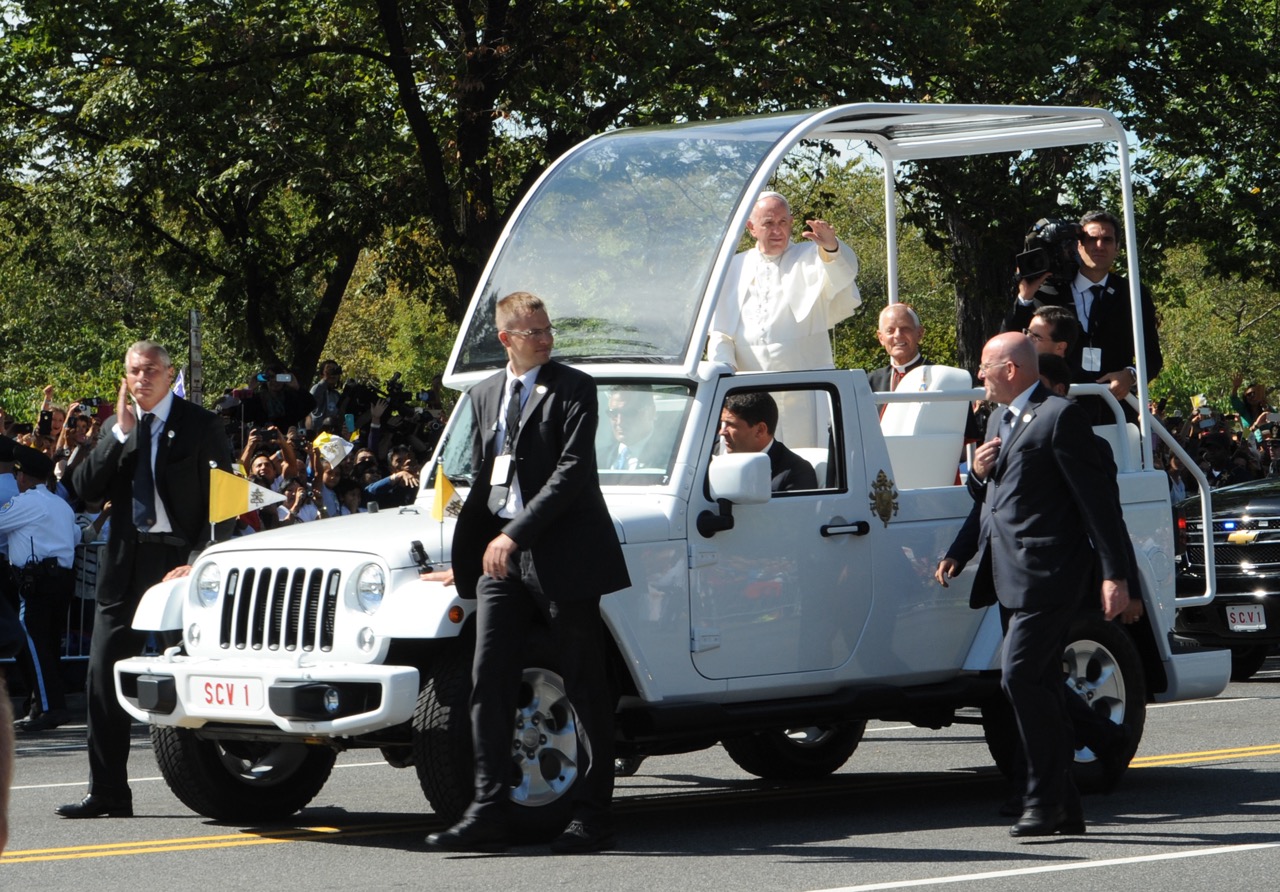 Frans páfi í Jeep JK-8 í Washington árið 2015.