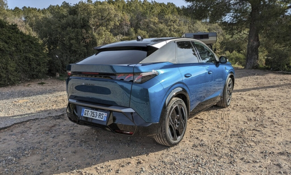 Séð aftan á e-3008. Betur búnar útgáfur eins og GT línan sem sýnd er hér, eru með 20 tommu felgur. – Mynd: Peter Sigal