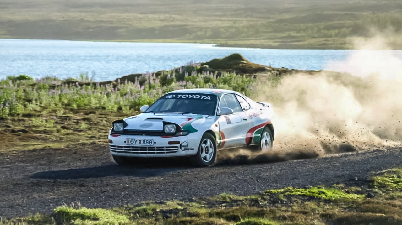 Eins og glöggir sjá er þetta Toyota Celica árgerð 1990. Eftir akstur einnar sérleiðarinnar man ég eftir krökkum sem klöppuðu þegar við komum akandi. Þau hrópuðu glöð í bragði: „Hér er hann! Flottasti bíllinn. Bíllinn með augun!“ Þetta heyrðum við inn um opinn gluggann mín megin og gátum ekki annað en brosað.