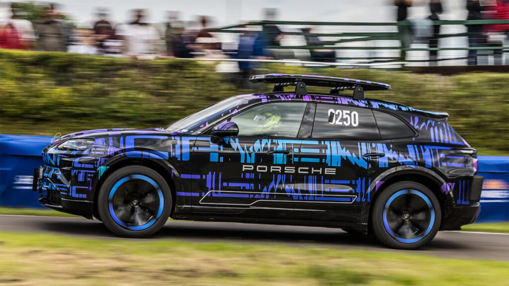 Fyrirtækið kom með næstum framleiðslufrumgerð af rafknúna Cayenne sportjeppanum á dögunum í Shelsley Walsh hraðaklifurskeppnina í Worcestershire á Englandi.