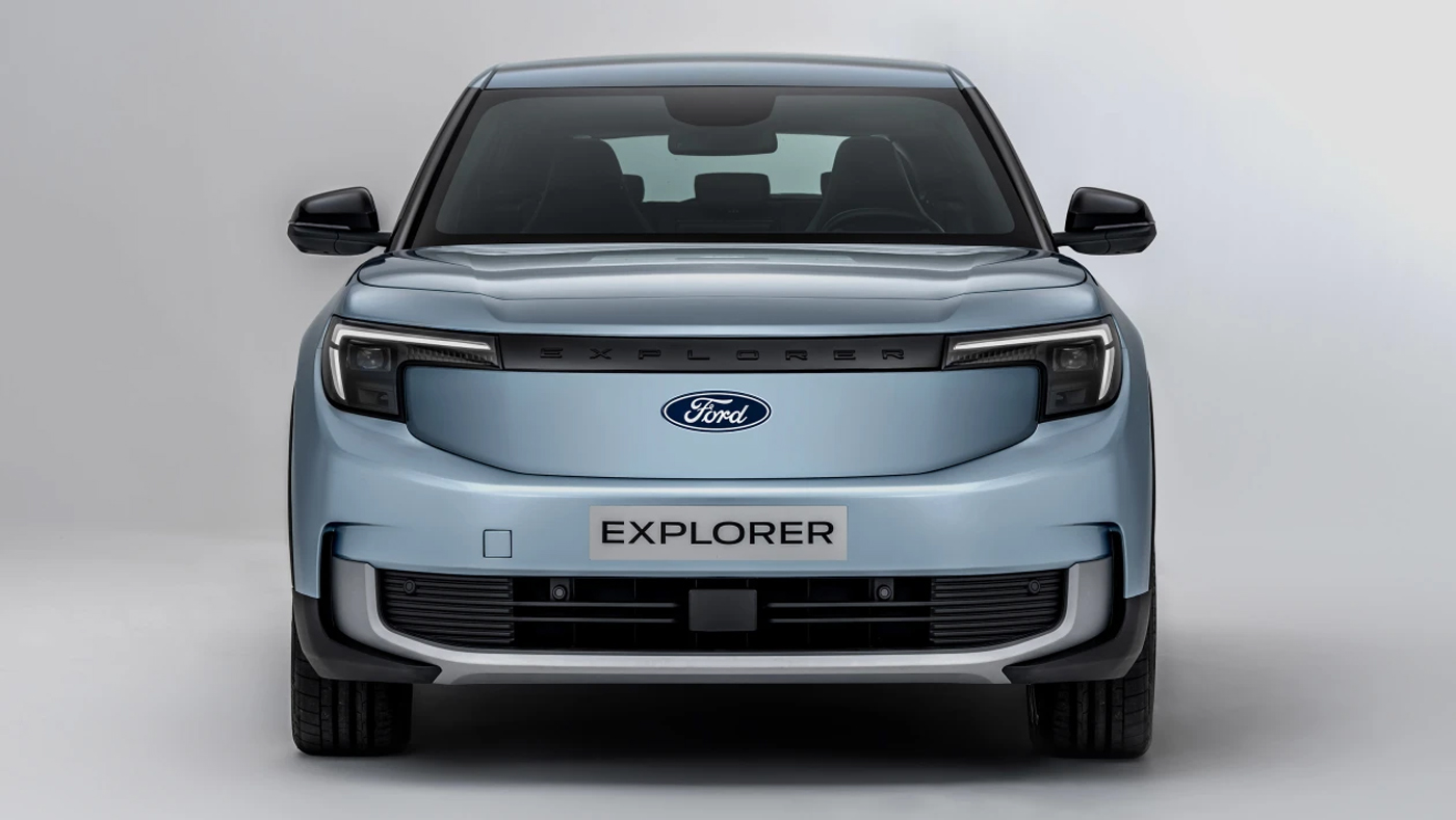 Að framan tekur Explorer á sig þéttari, meira áberandi afstöðu en ID-bíllinn með sínu vinalega andliti.