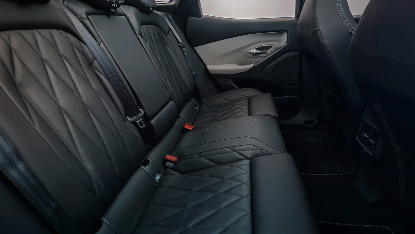 Afturendinn er með svipaða ferningalaga lögun að framan, einnig með LED ljósum tengdum með svartri klæðningu.