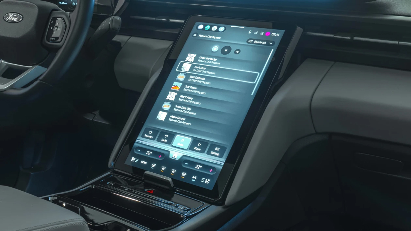 Explorerinn er með stillanlegan 15 tommu uppréttan skjá, sem er einstakur í því að keyra SYNCMove hugbúnað Ford sem gerir kleift að kortleggja allan skjáinn, auk aðgangs að öllum venjulegum snjallsímatengimöguleikum.