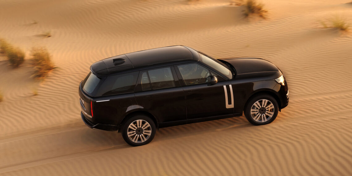 JLR hefur biðlista yfir meira en 60.000 eftir Range Rover Electric. Hér má sjá frumgerð sem er í eyðimerkurprófunum í Sameinuðu arabísku furstadæmunum. (mynd: JAGUAR LAND ROVER)