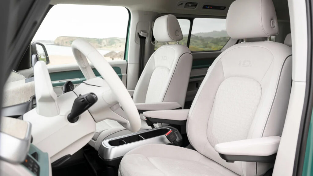 Mælaborðið á LWB-bílnum mun vera kunnuglegt öllum sem hafa eytt tíma á bak við stýrið á VW ID-bíl. Það er 12,9 tommu snertiskjár með nýjasta upplýsinga- og afþreyingarkerfi VW í miðju mælaborðsins (óbreytt frá venjulegum Buzz) og 5,3 tommu ökumannsskjá.