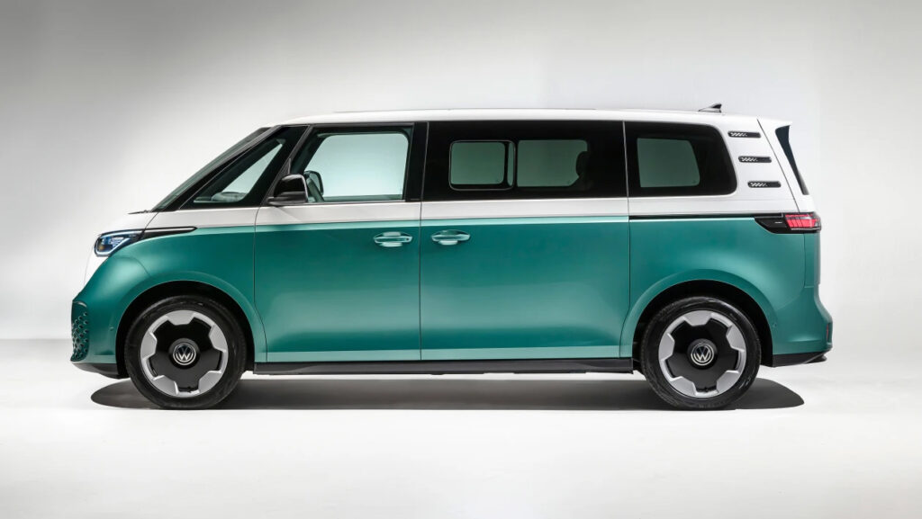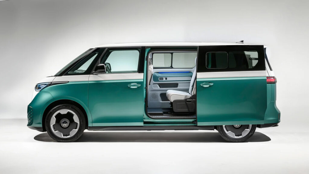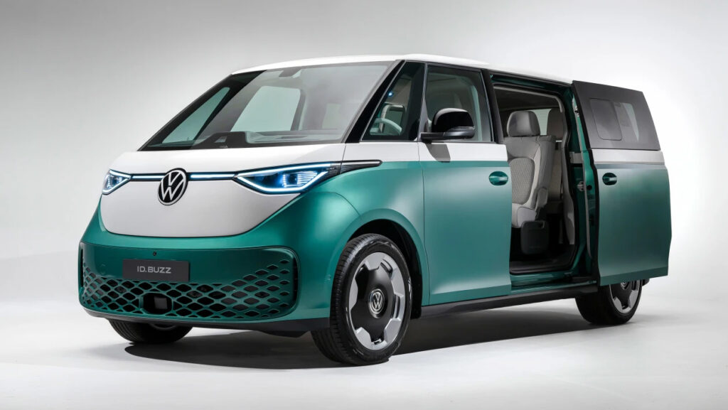 ID. Buzz kom á markað á síðasta ári í fimm sæta MPV og Cargo sendibíl, en nú hefur stærri Volkswagen ID. Buzz LWB hefur verið opinberaður með allt að sjö sæti, því VW kynnti þennan nýja bíl á föstudaginn 2. júní.